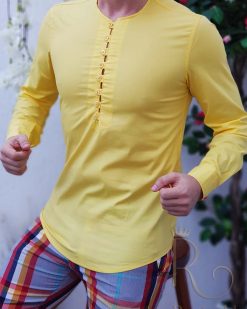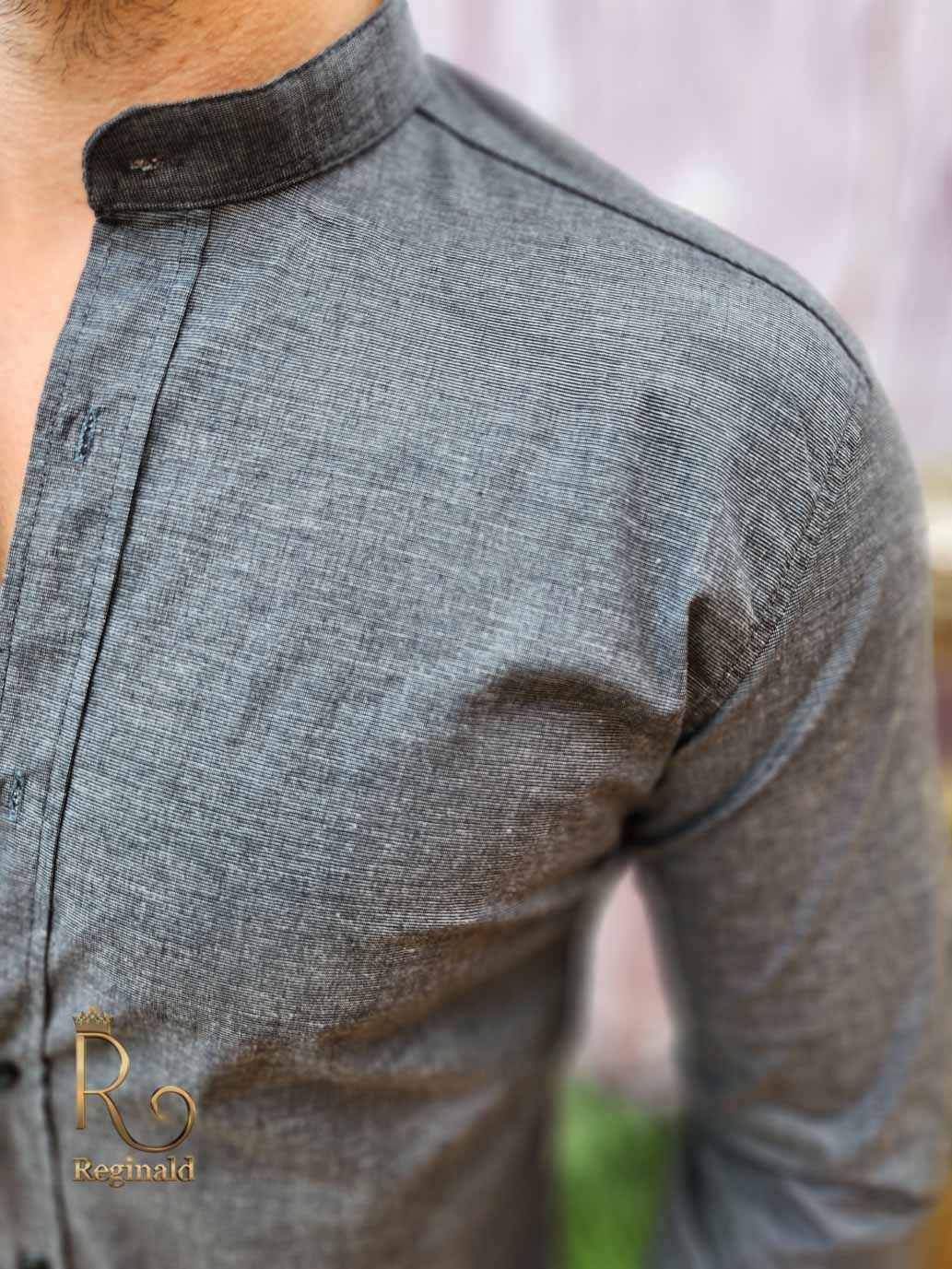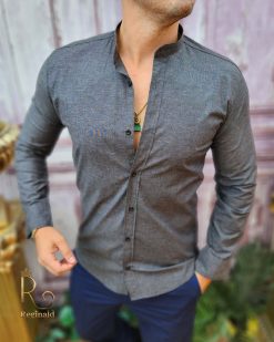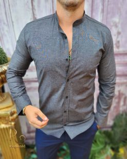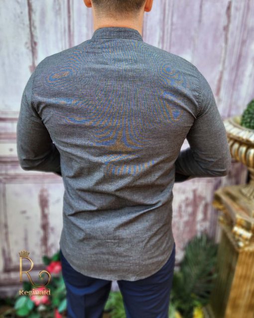 Cămașa barbateasca pentru sezonul toamna / primavara avand textura ca a materialului confectionat din in.