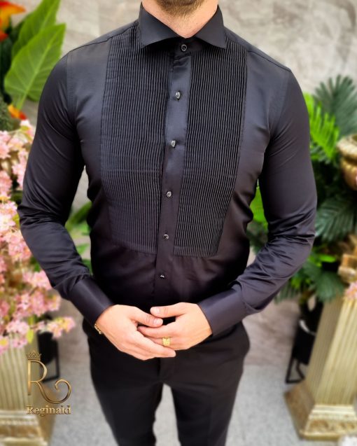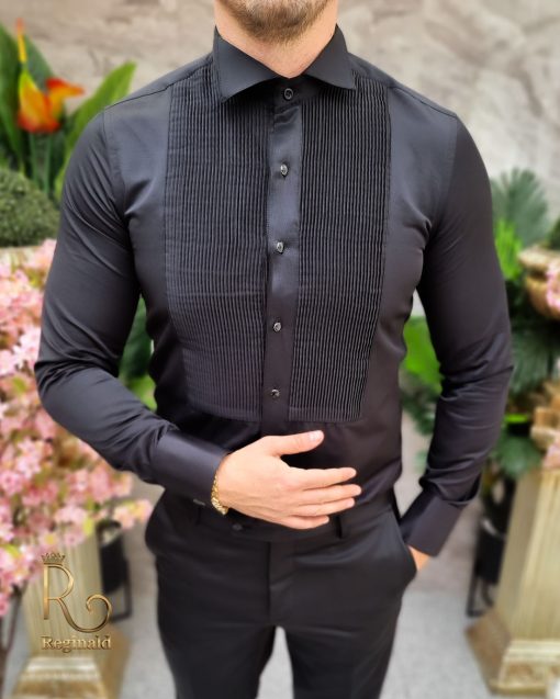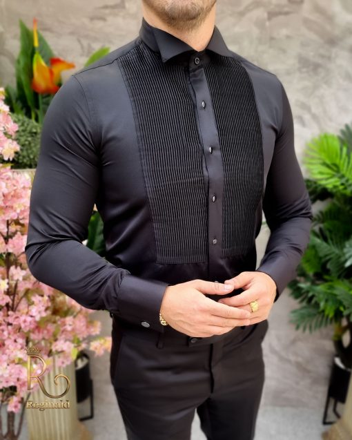 Cămașa albă pentru bărbați cu butoni și guler de papion este o alegere elegantă pentru evenimente formale sau ocazii speciale. Această cămașă are de obicei un guler ascuțit, care poate fi îndreptat în sus pentru a oferi suport pentru papion.
