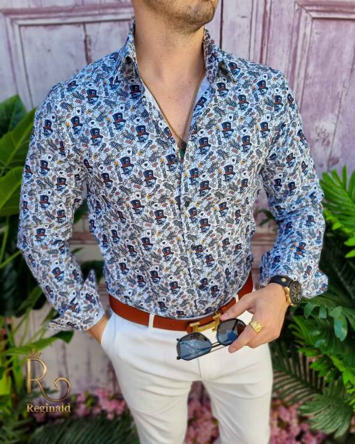 Cămașă Reginald de bărbați, Slim Fit, cu imprimeuri – CM506