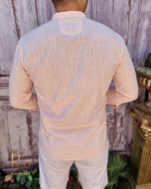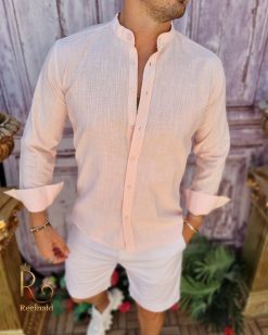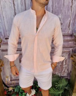 Cămașa barbateasca pentru sezonul cald avand textura ca a materialului confectionat din in.