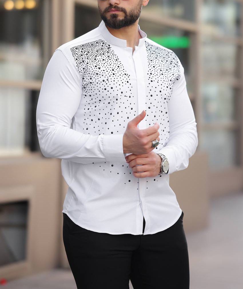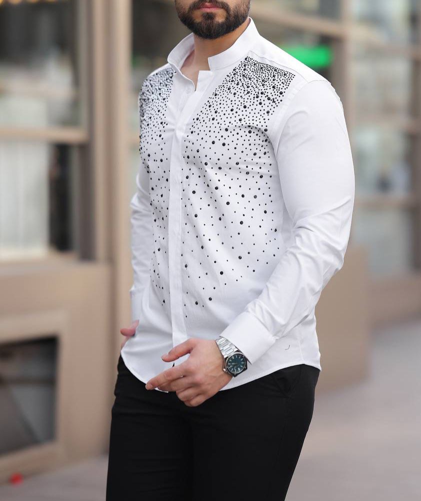 Camasa slim fit de barbati, alba cu pietre negre – CM532