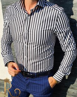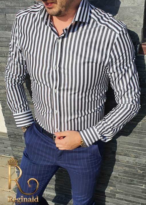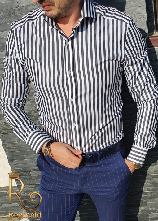 Camasa slim fit in dungi negre , de barbati din 100% bumbac