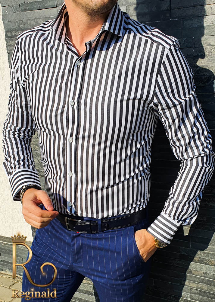 Camasa slim fit in dungi negre , de barbati din 100% bumbac – CM421