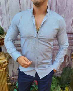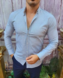 Cămașă texturata de bărbați, guler cu nasturi – CR108