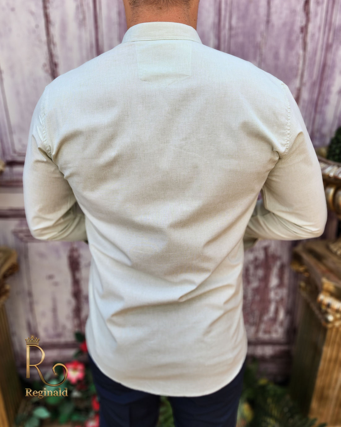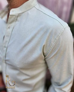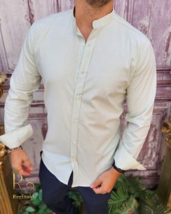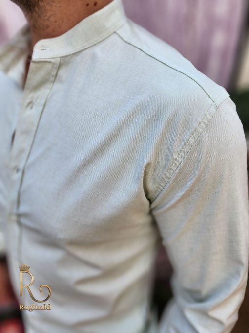 Cămașă verde deschis texturat de bărbați, guler tunica – CR97