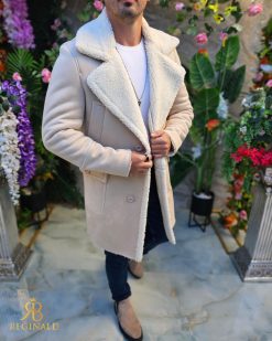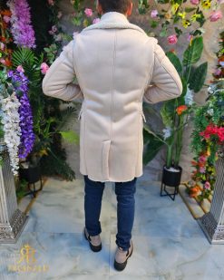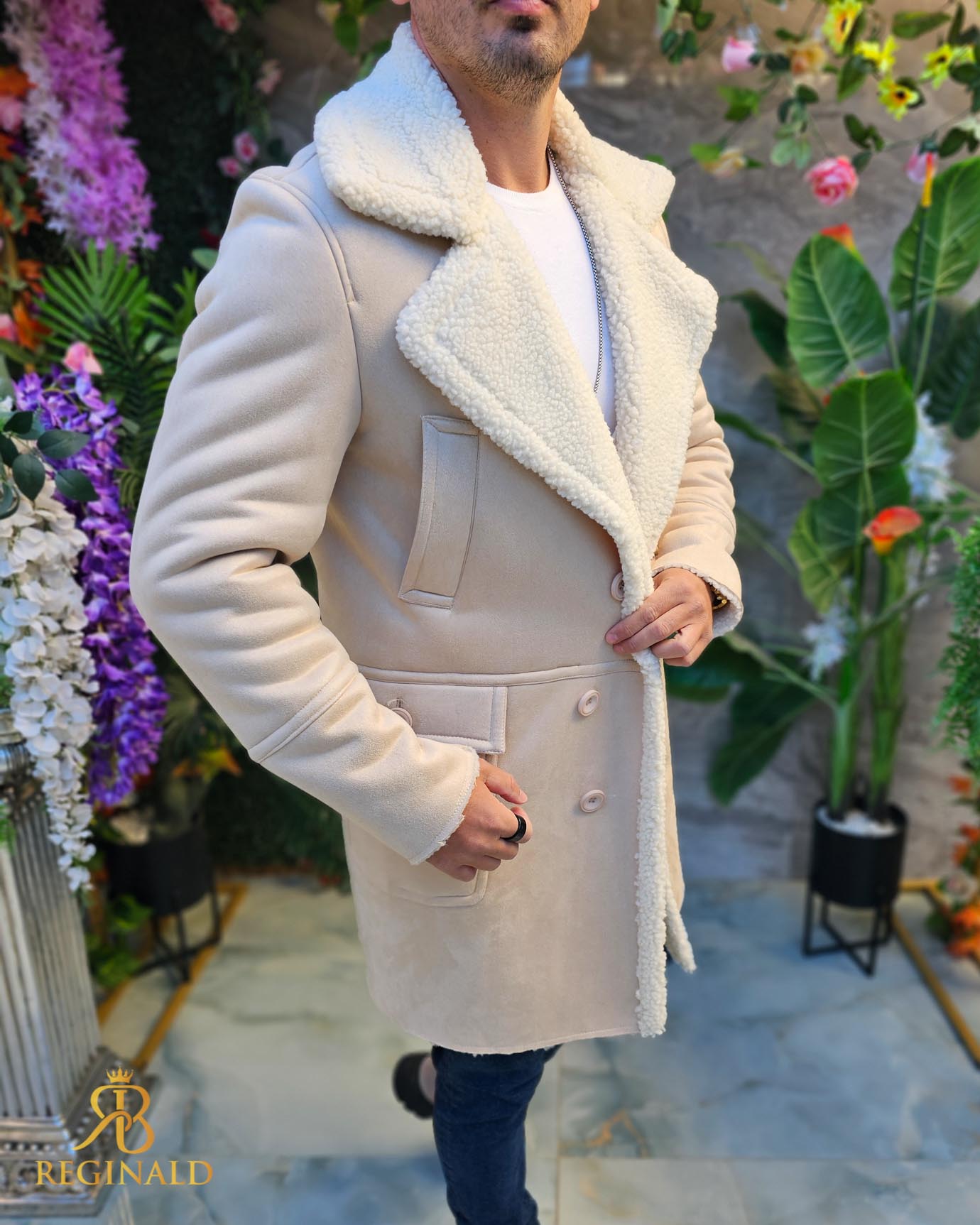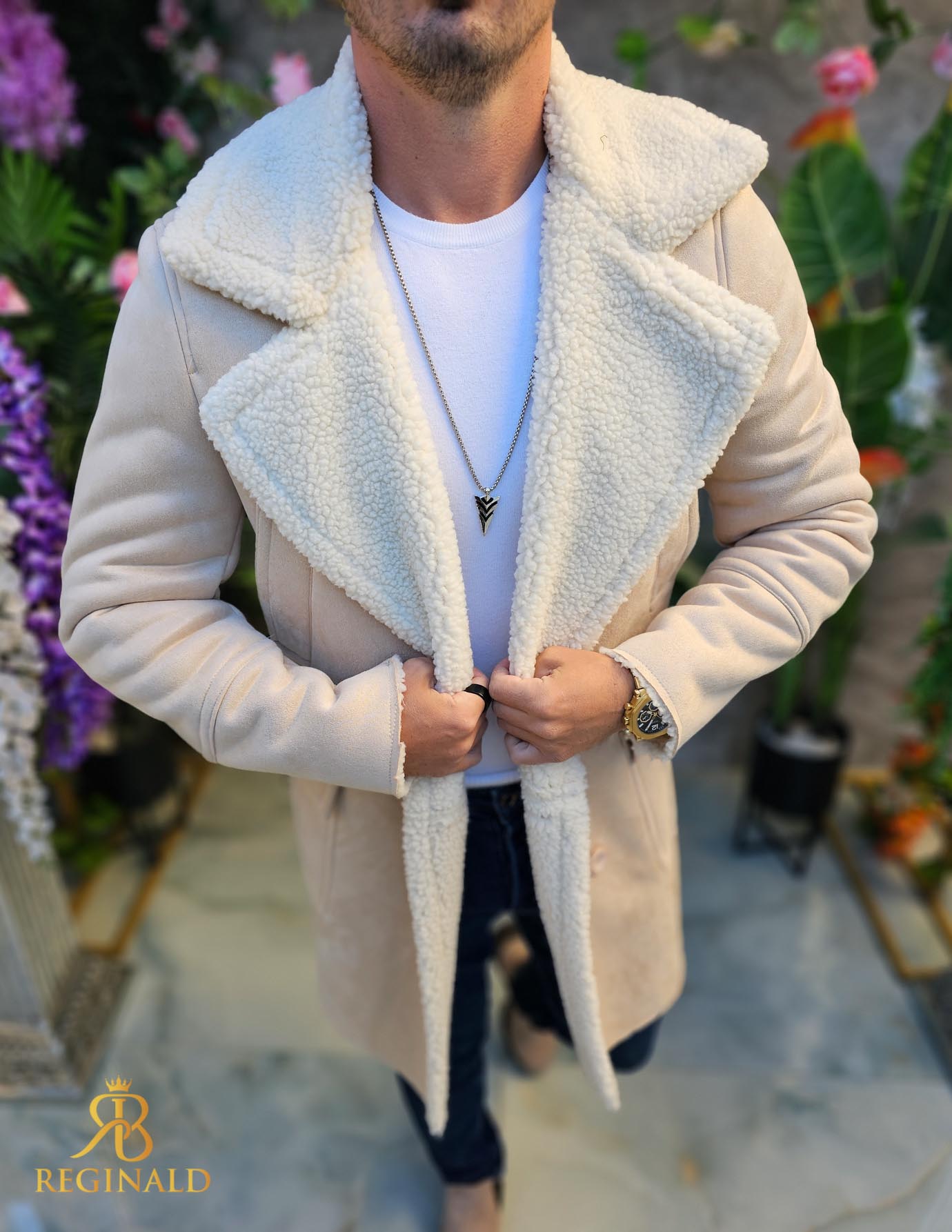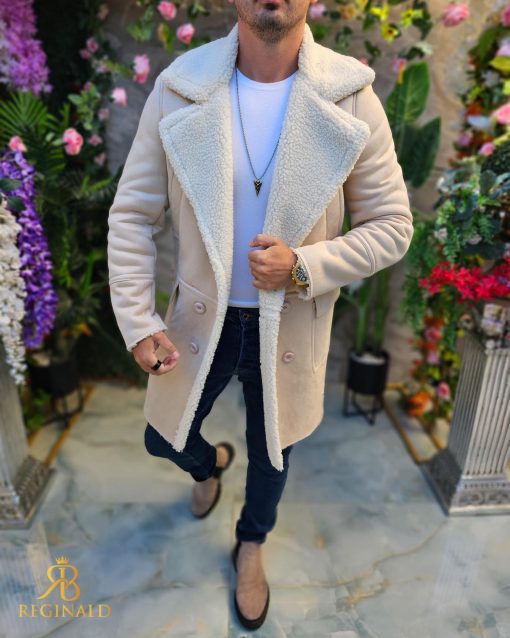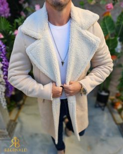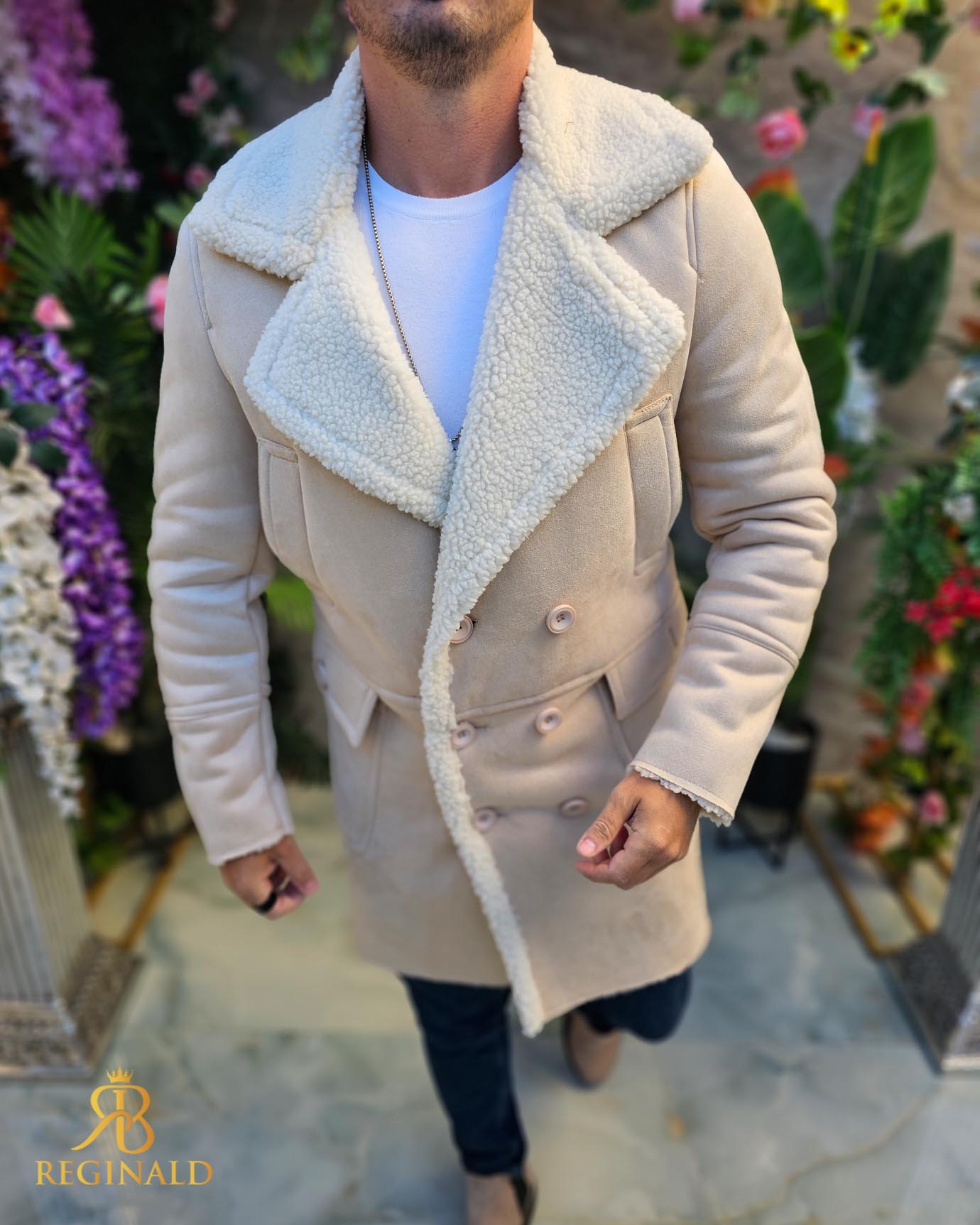 Cojoc bej lung de barbati, interior imblanit complet, slim-fit – CJ036