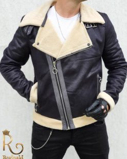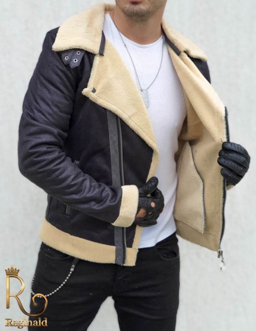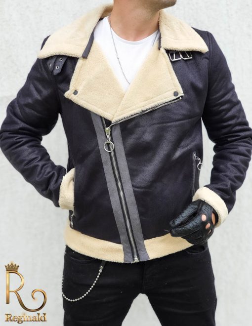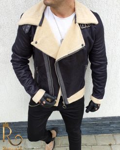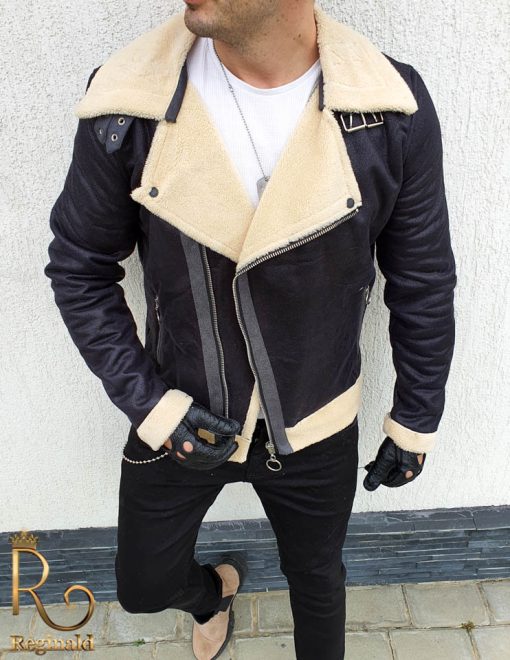 Cojoc de barbati, negru imblanit complet la interior, blana maro, New Collection