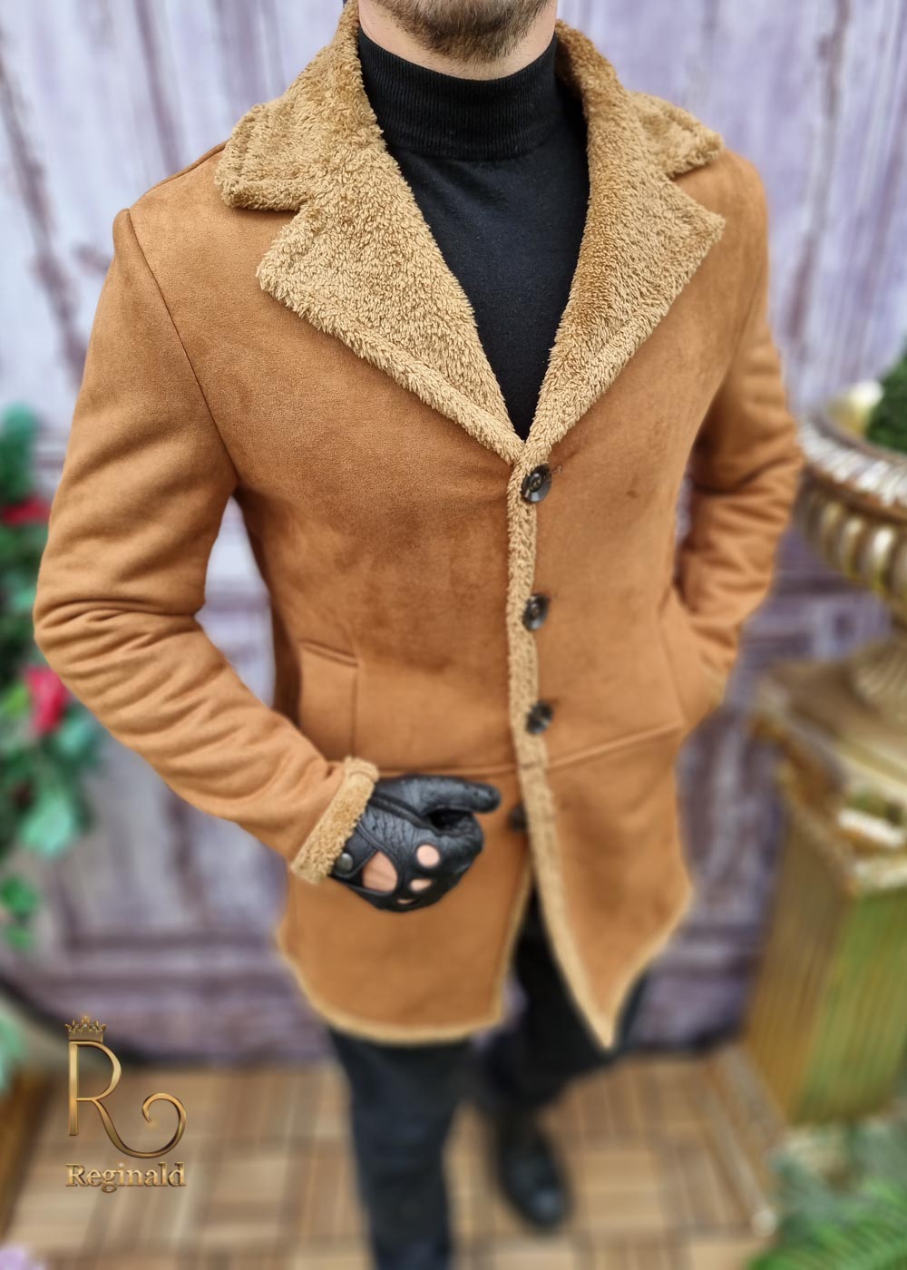 Cojoc lung de barbati, imblanit la interior, blana plusata, croiala slim-fit , Colectia Reginald