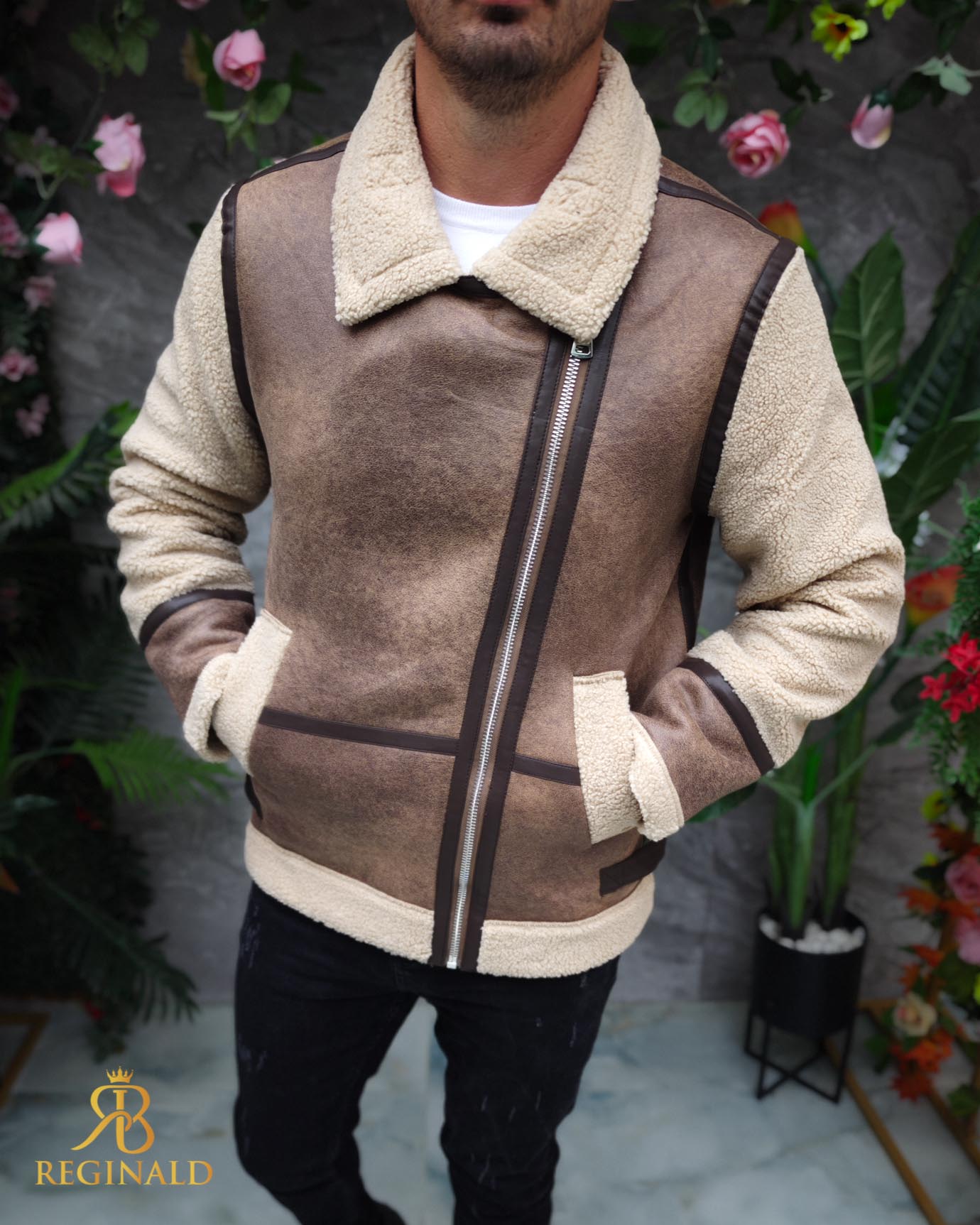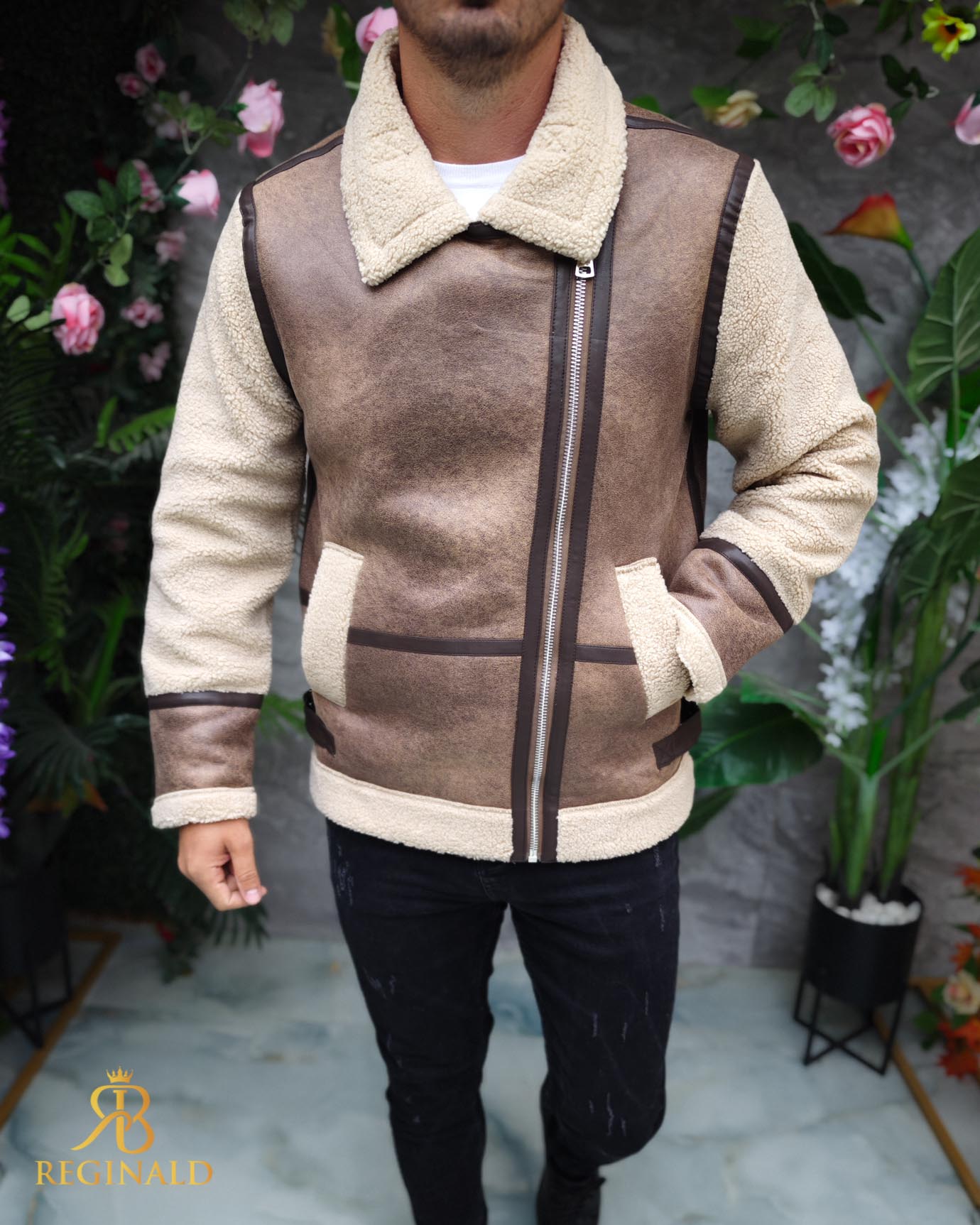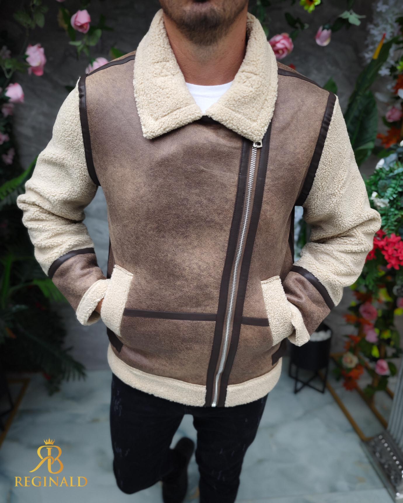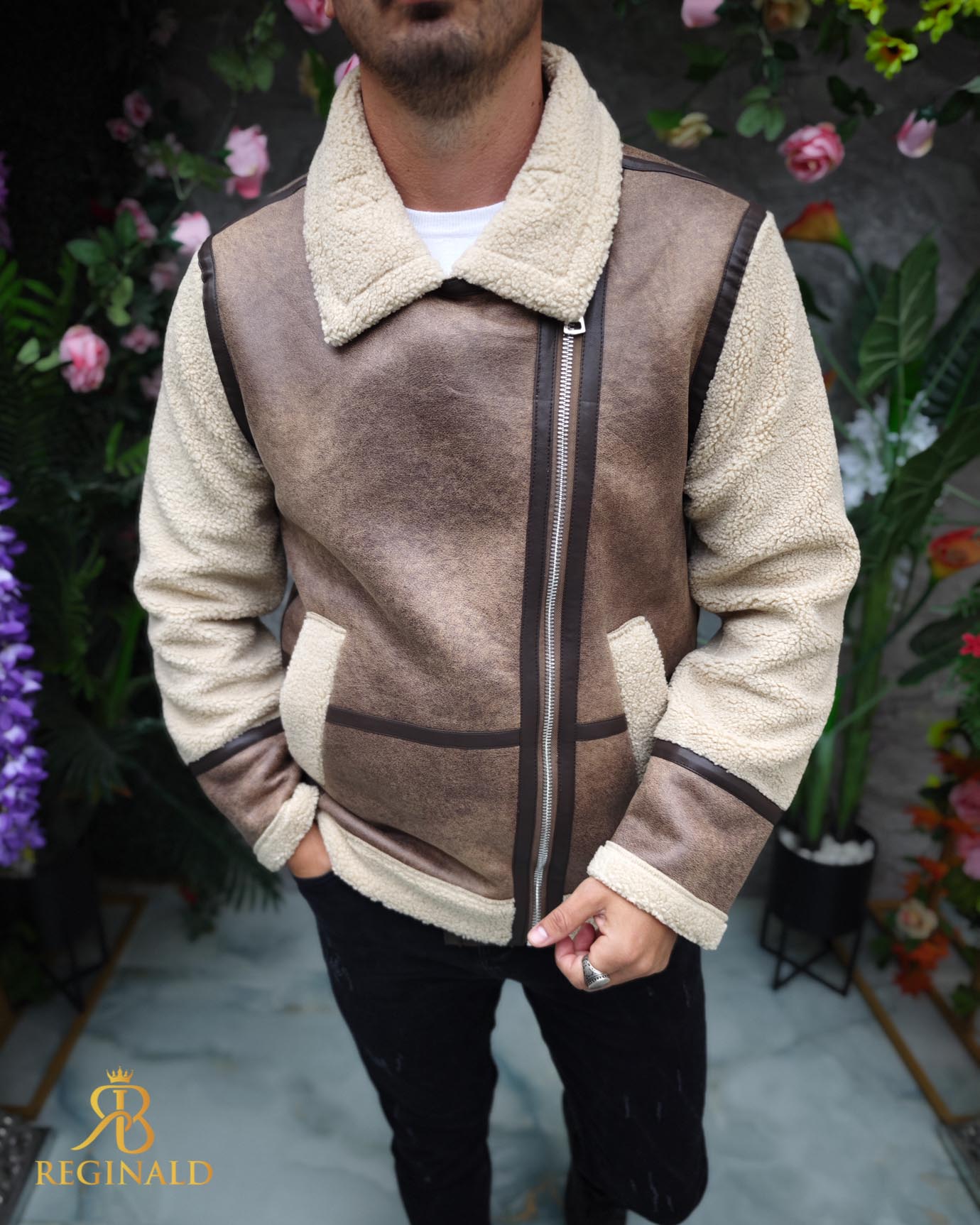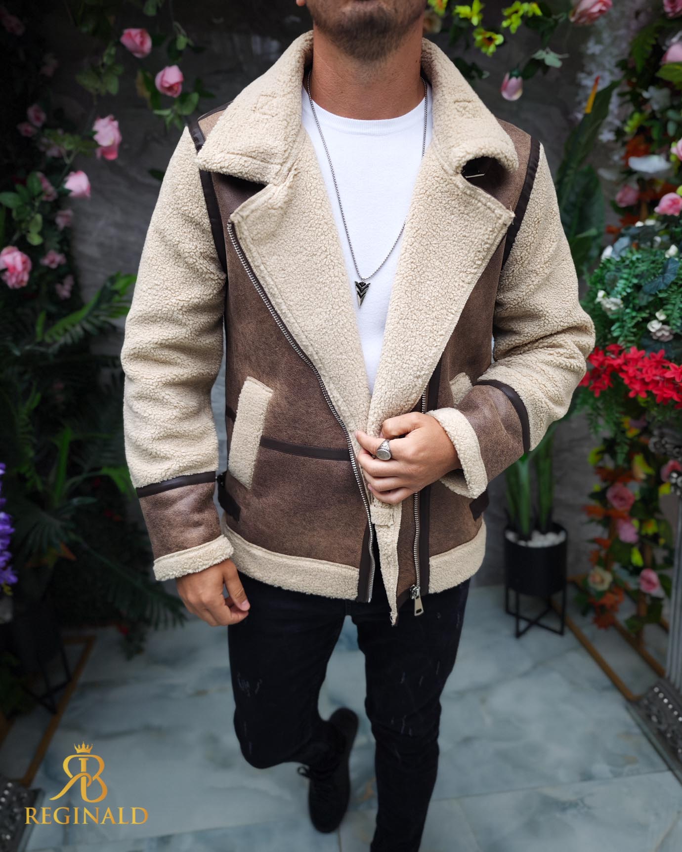 Cojoc maro de barbati, interior imblanit, slim-fit – CJ030