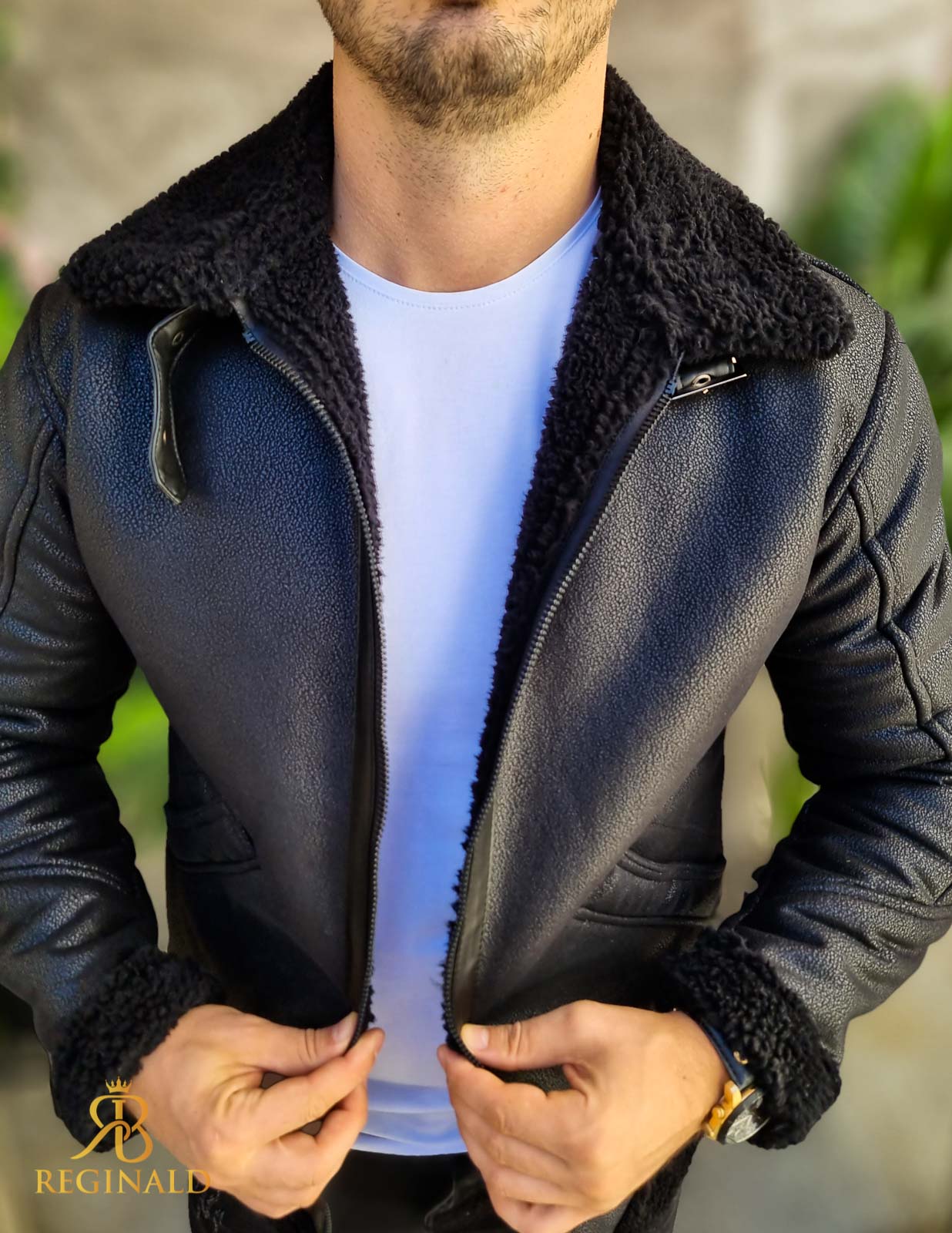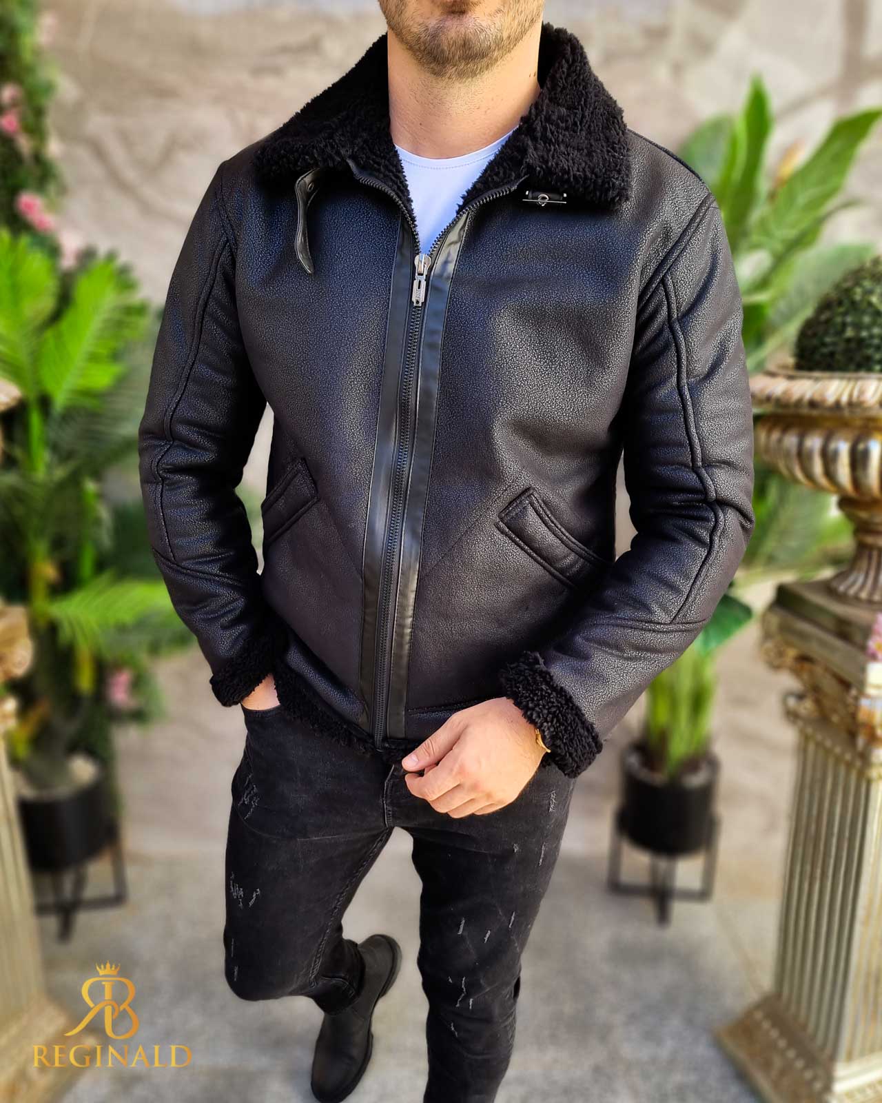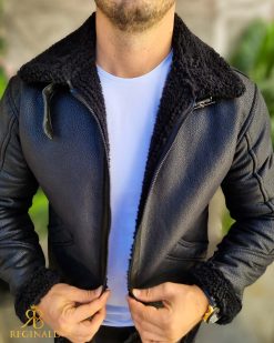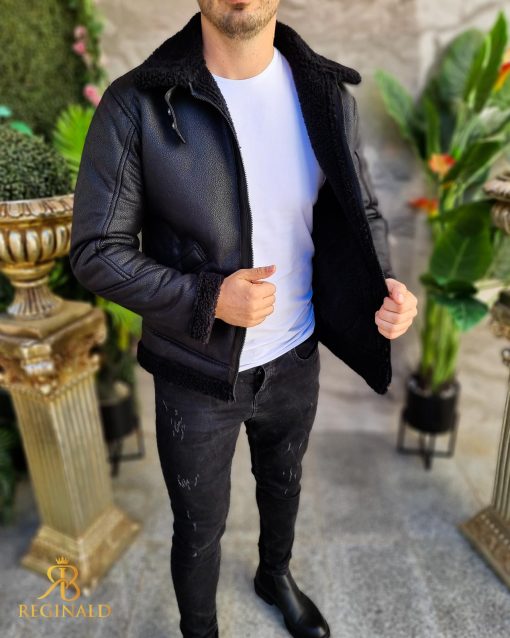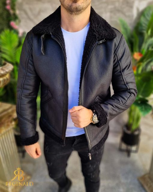 Cojoc negru de barbati, gros, interior imblanit, slim-fit – CJ008