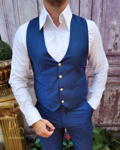 Vesta are 1 rand de nasturi, croiala slim-fit, 2 buzunare in fata, la spate bretea de ajustare marime, captuseala satinata.