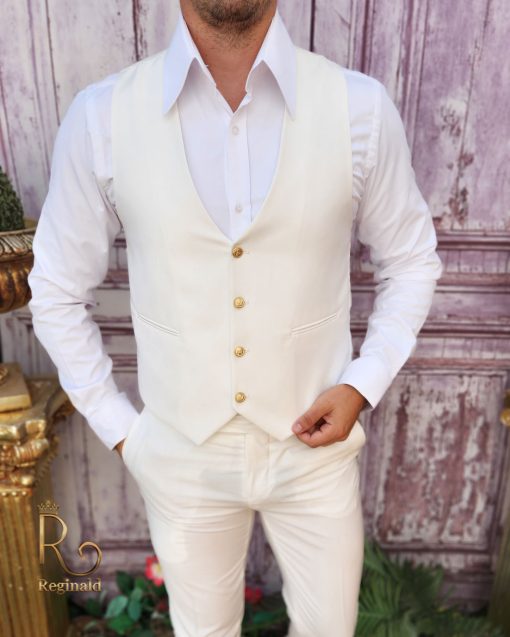 Vesta are 1 rand de nasturi, croiala slim-fit, 2 buzunare in fata, la spate bretea de ajustare marime, captuseala satinata.