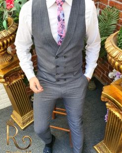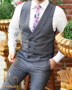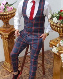 Compleu Vesta si Pantalon, Slim-Fit, bleumarin cu patratele rosii – CU98