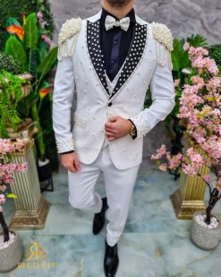 Sacou cu rever satinat, ascutit, perle argintii stralucitoare aplicate