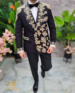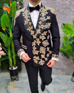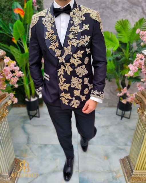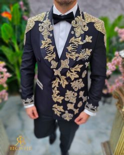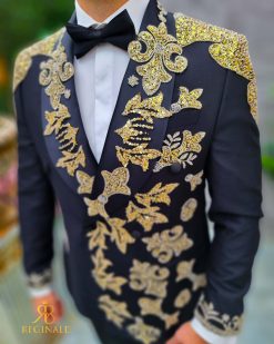 Sacou cu rever satinat, rotund, paiete aurii aplicate