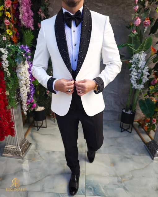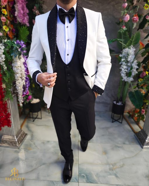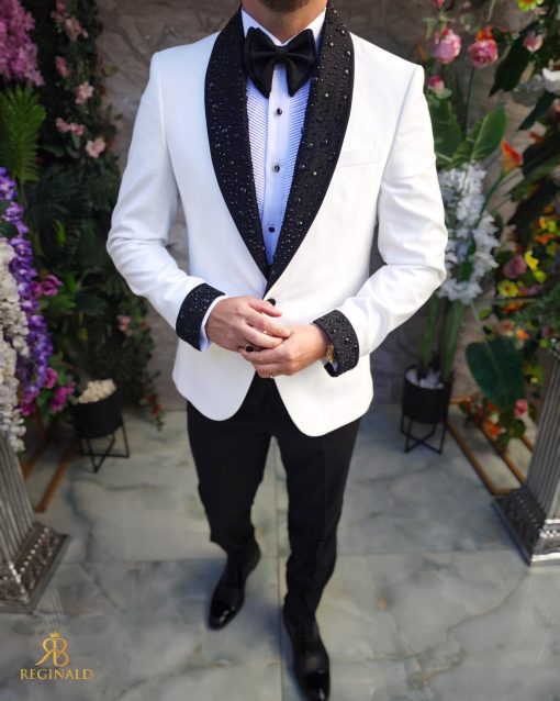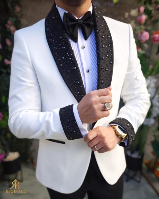 Culoare: model alb cu pietre stralucitoare aplicate pe rever