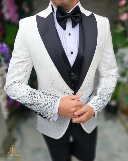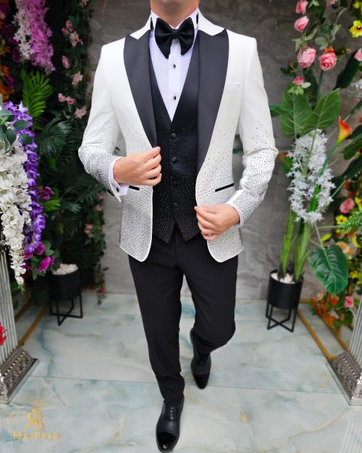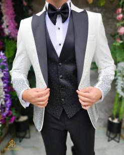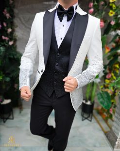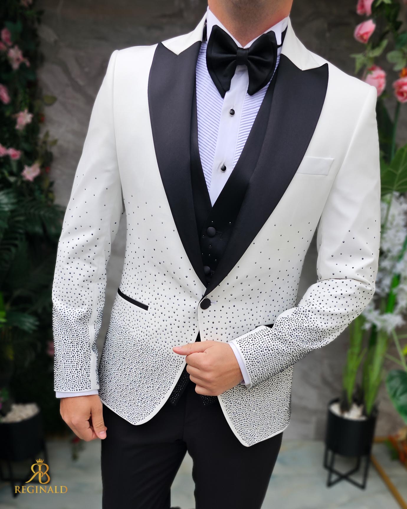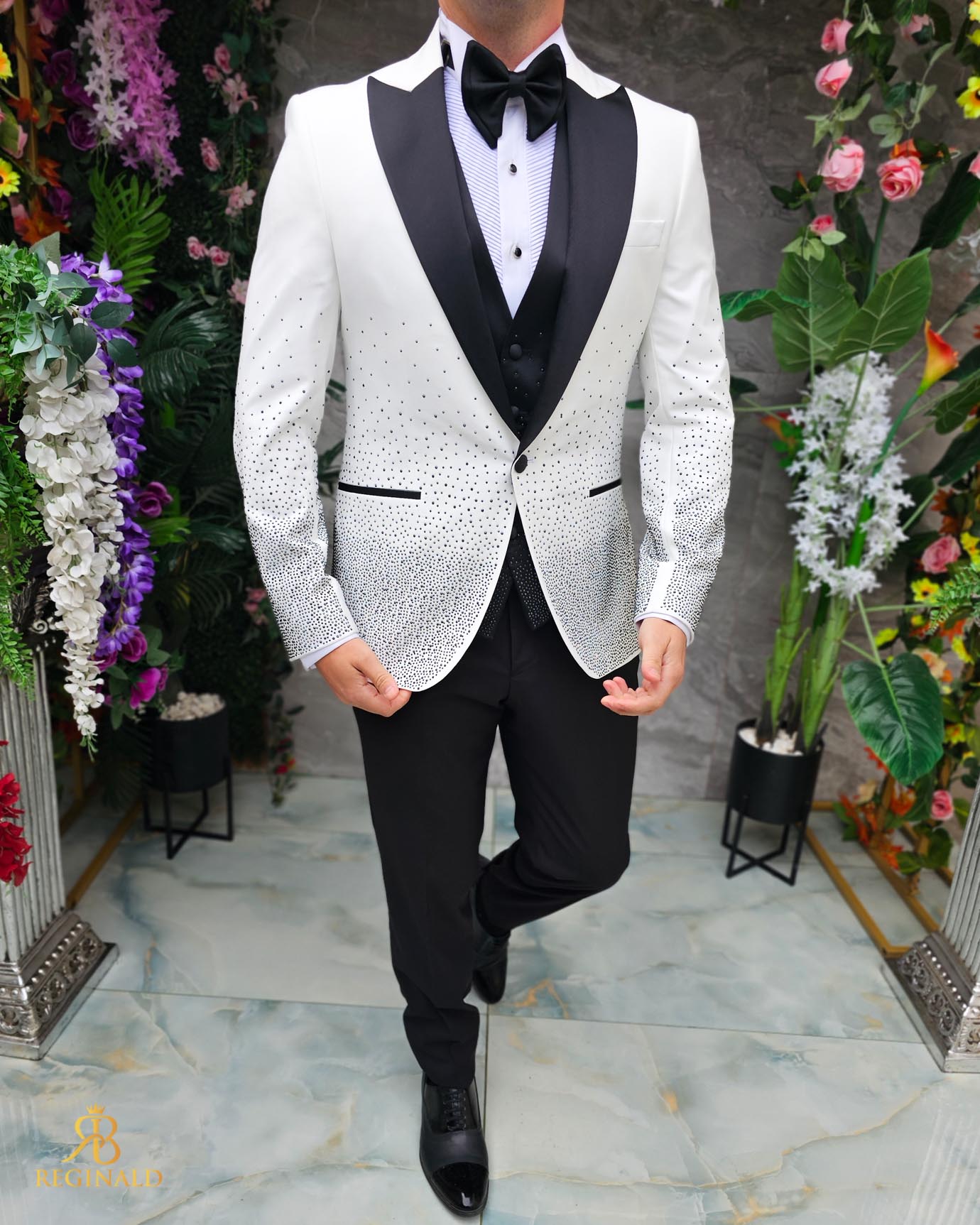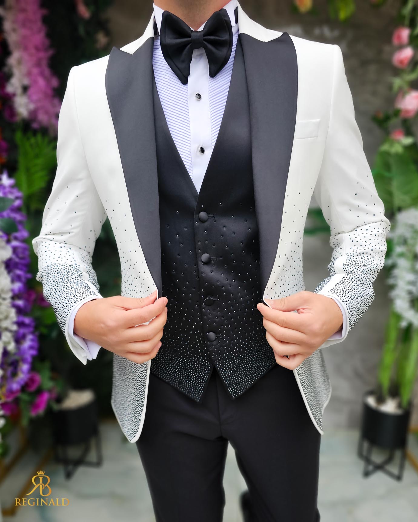 Costum Alb/Negru NAS/MIRE, Sacou, Vesta, Pantalon, Papion- C5178