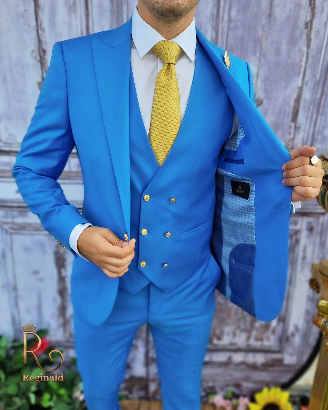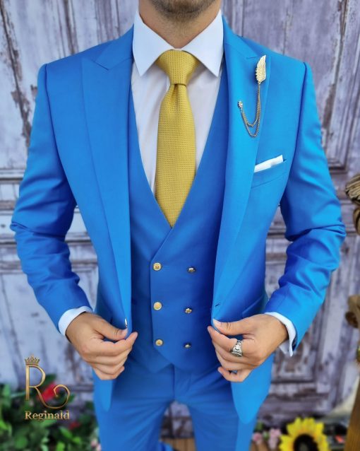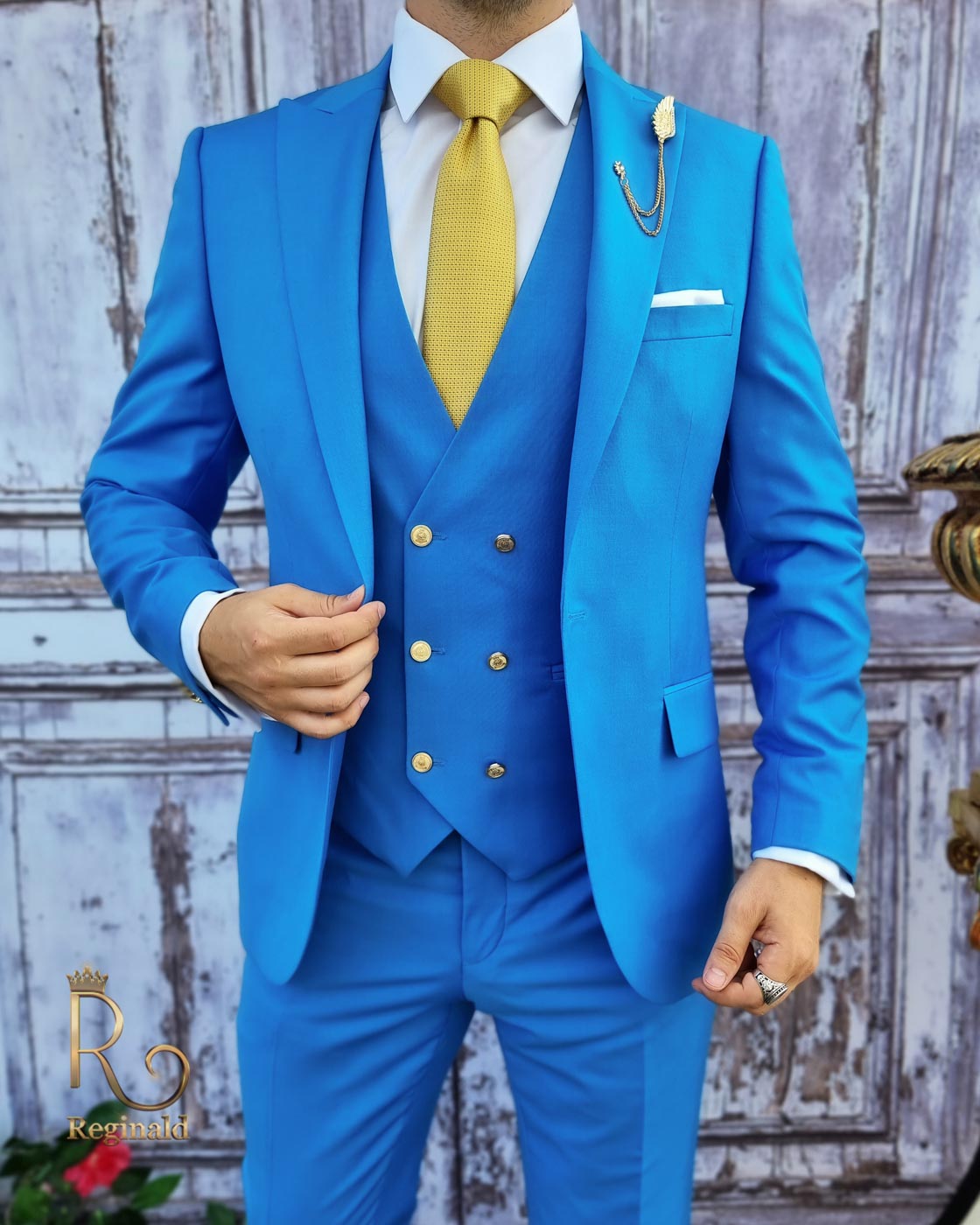 Costum bleu de bărbați Reginald Slim-Fit set din 3 piese