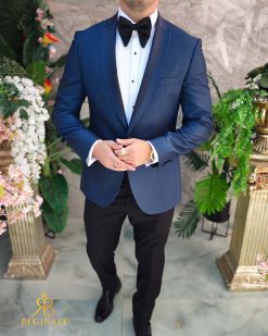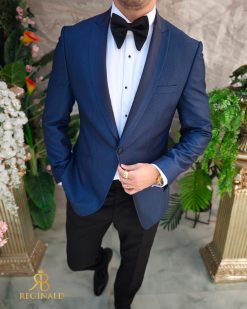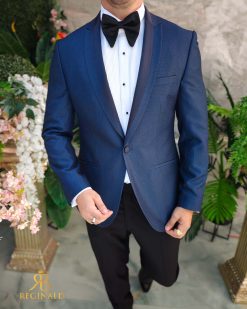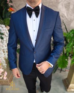 Costum albastru NAS/MIRE, Sacou, Pantalon si Papion- C4905