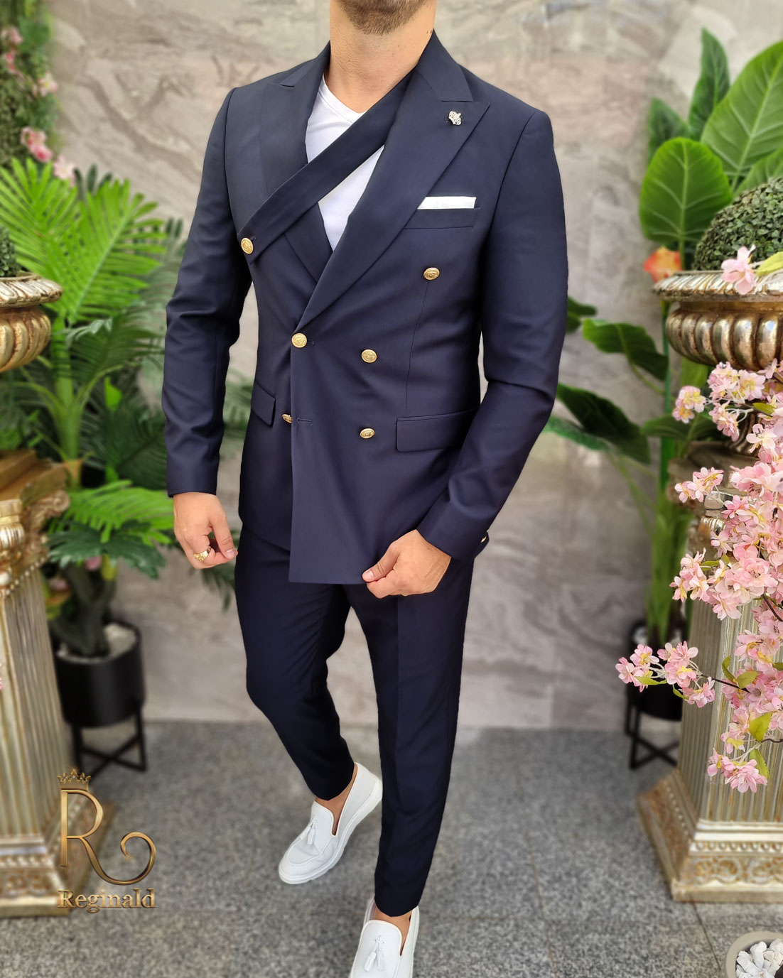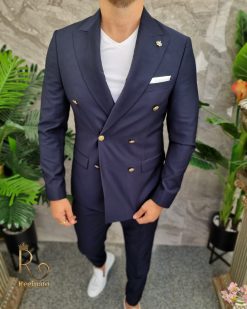 Sacoul prezintă un aspect clasic cu rever lat și se închide cu 2 randuri de nasturi, avand si o bata care se poate atasata pe rever. Manșetele discrete completează designul, oferind un aspect sofisticat și stilizat. Datorită croielii slim-fit, sacoul se mulează perfect pe corpul bărbatului, evidențiind forma sa și oferind o notă de eleganță contemporană.