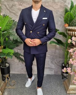 Acest costum de bărbați elegant, cu croiala slim-fit, este alegerea perfectă pentru domni care doresc să arate impecabil, cu o notă de stil modern și sofisticat. Fiind parte din colecția nouă, acesta reflectă cele mai recente tendințe în modă și design vestimentar, făcându-l potrivit pentru evenimente speciale, întâlniri de afaceri sau orice altă ocazie în care eleganța și bunul gust sunt esențiale.