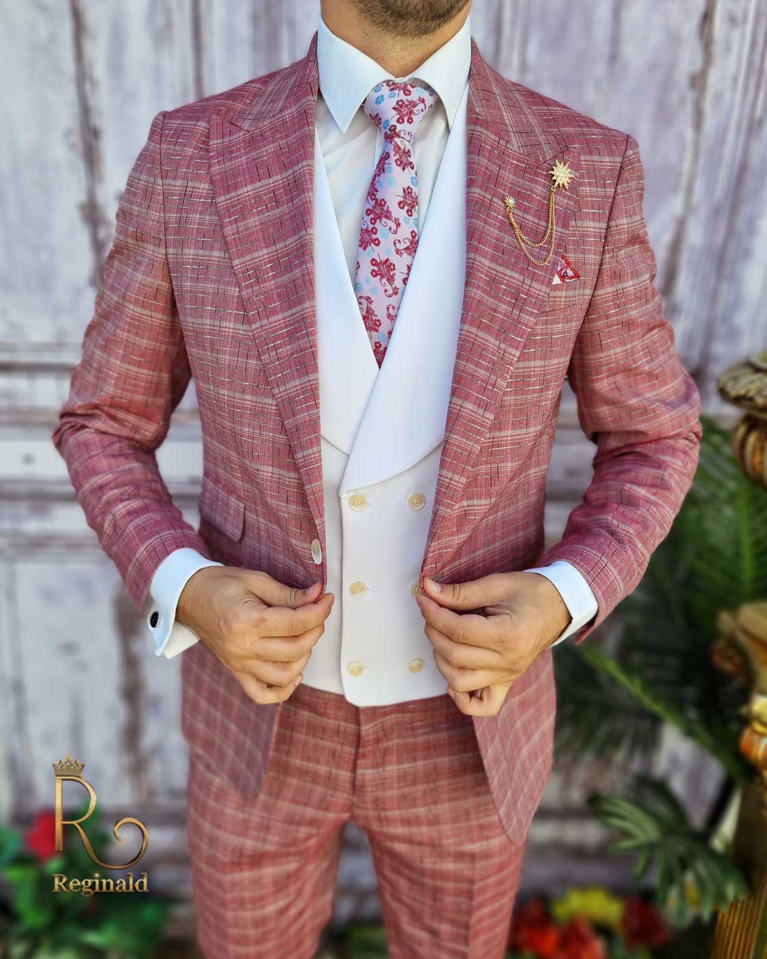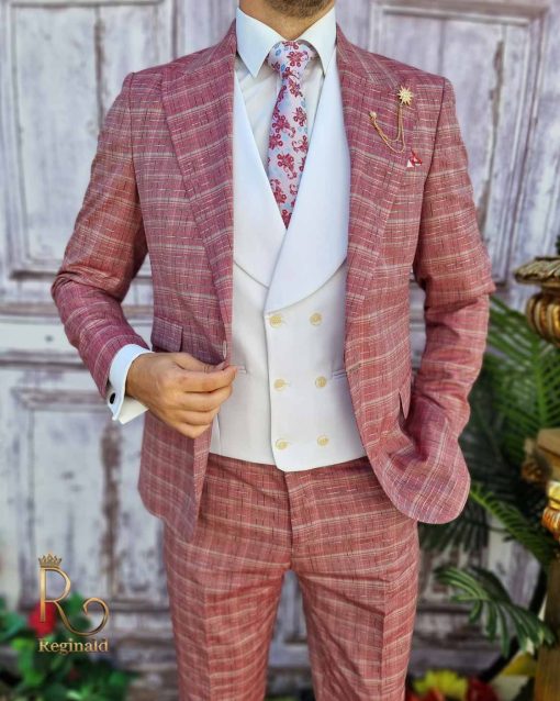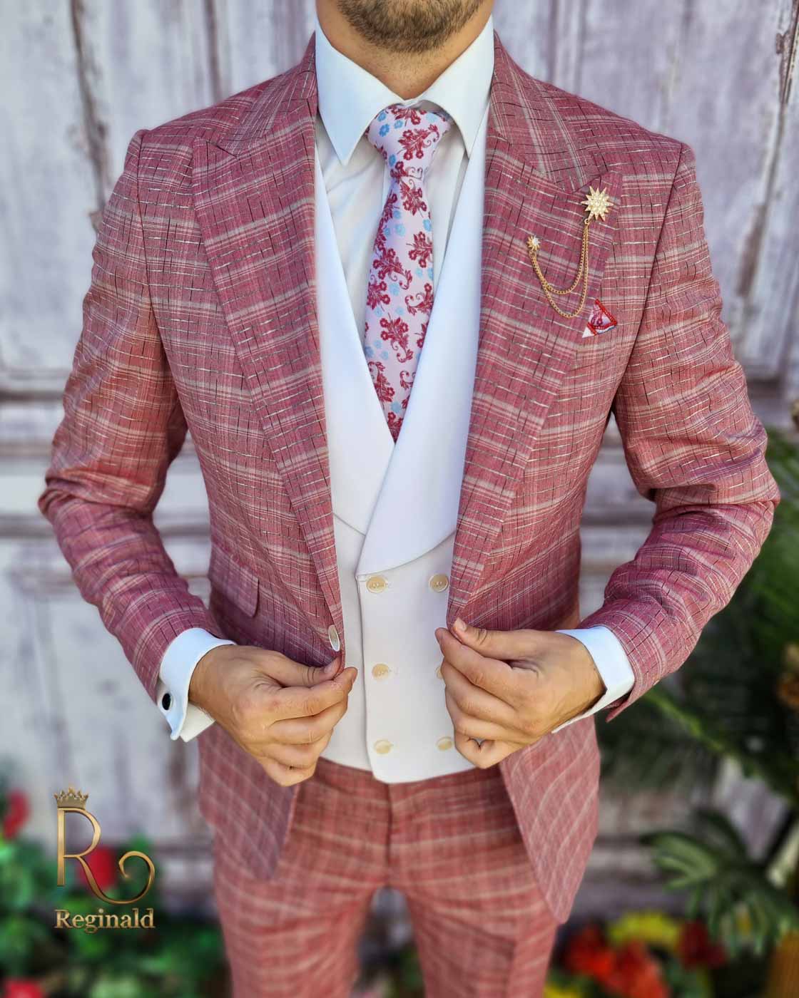 Costum barbatesc, Slim Fit, Sacou, Vesta alba si Pantalon – C3160