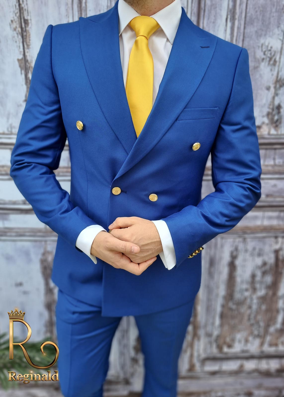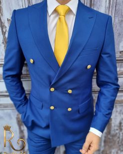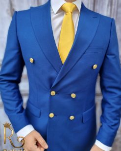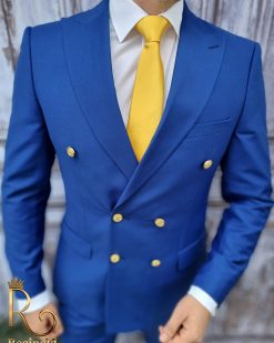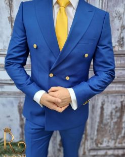 Costum barbati butoni aurii, Double Breasted suit, Slim Fit, albastru, Sacou-Pantalon – C1723