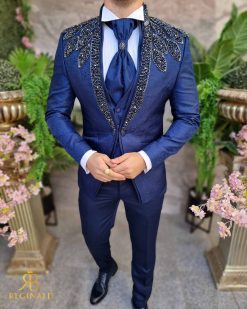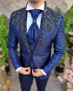 Costum bleumarin cu pietre stralucitoare, set: 4 piese pentru NAS/MIRE/ARTISTI – C4398