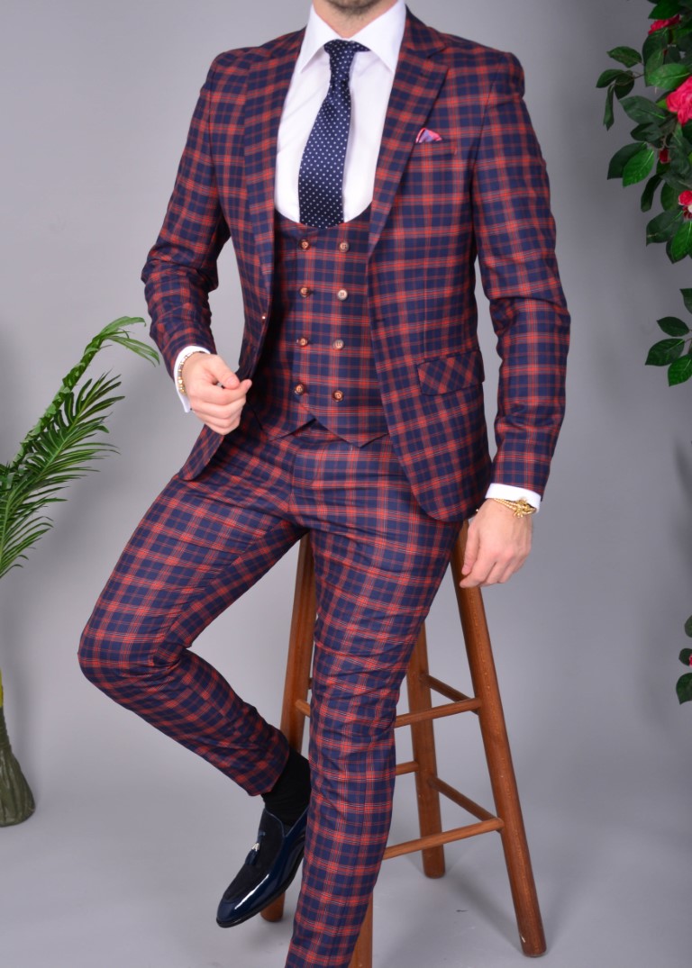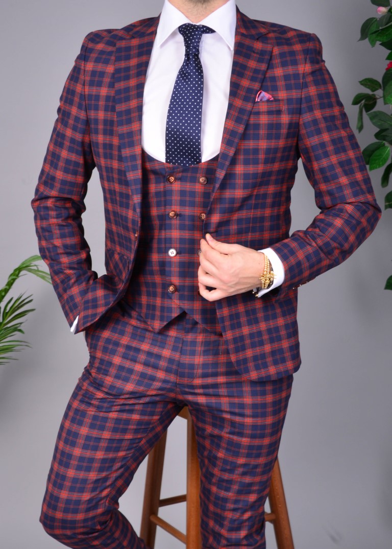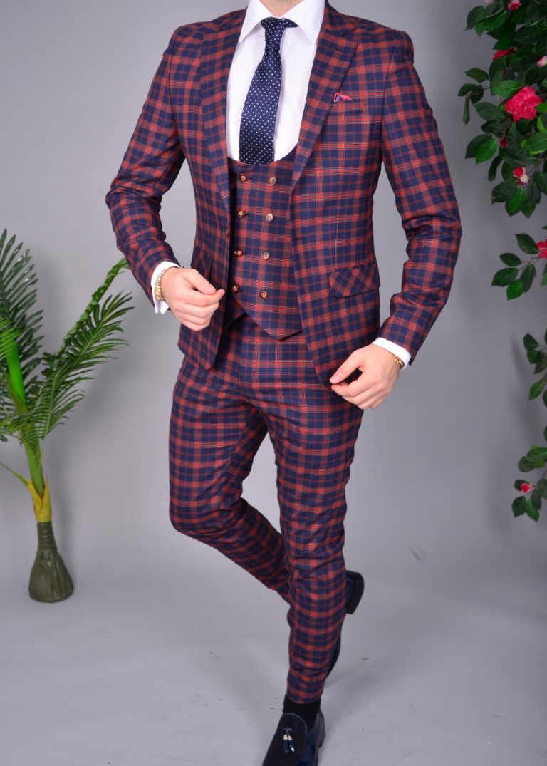 Costum slim pentru bărbați, cambrat, realizat din 3 piese