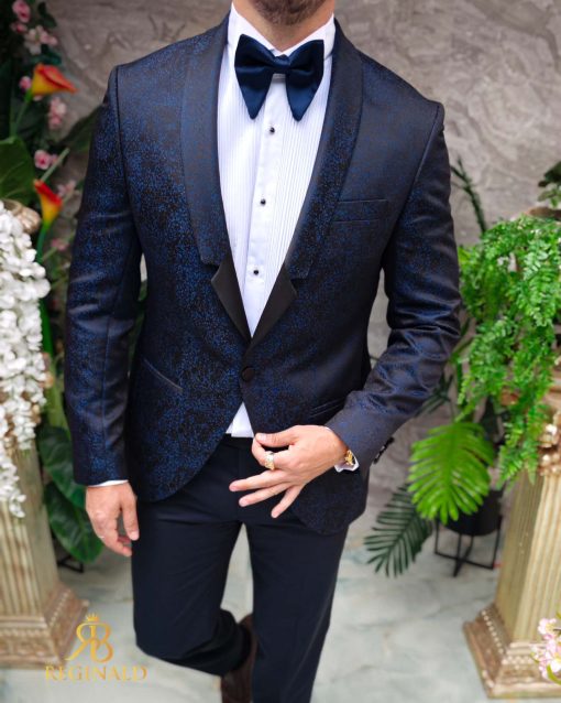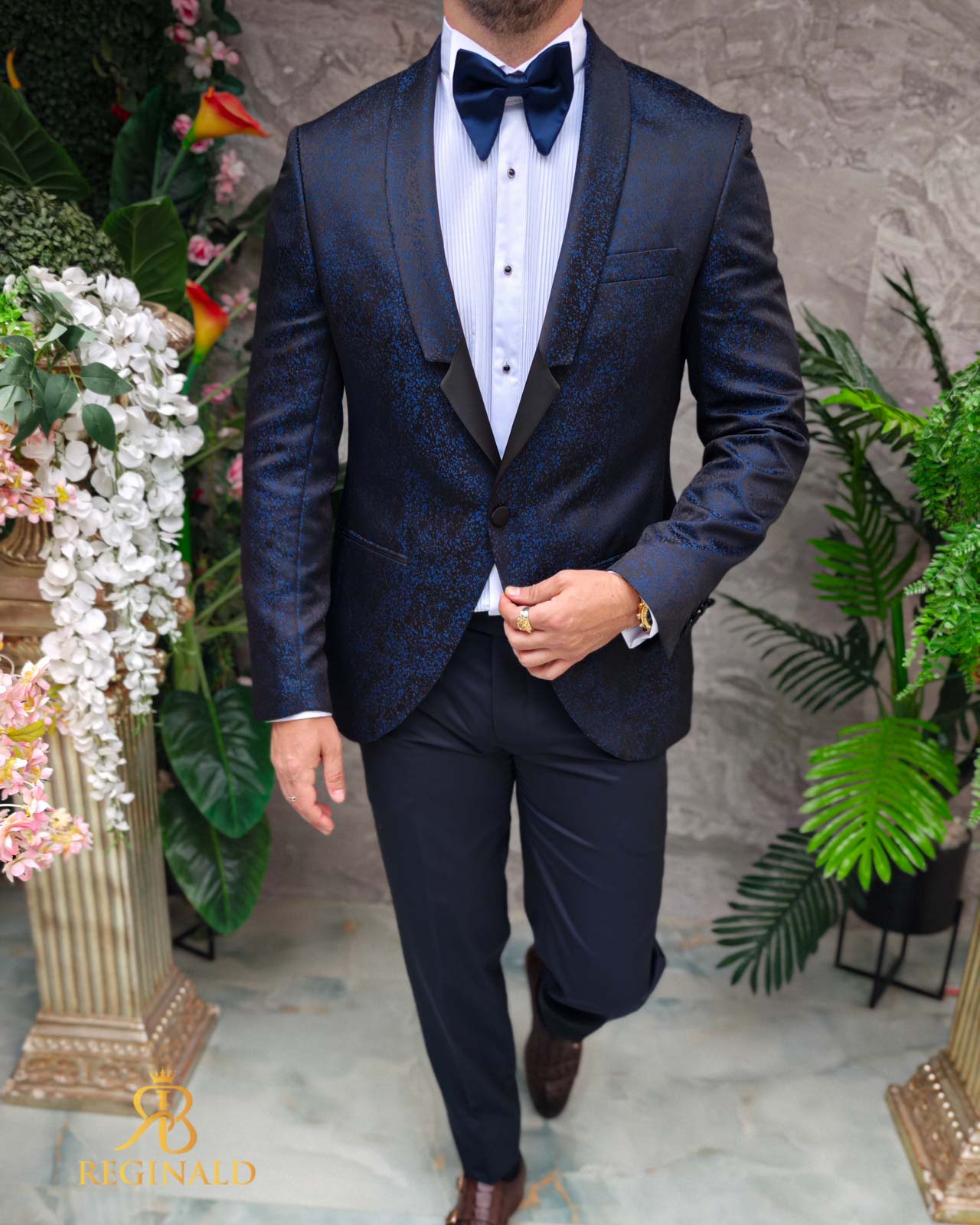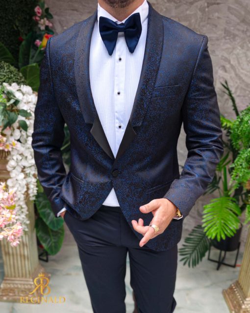Set Cravata si batista, Turcoaz cu model - CV1074