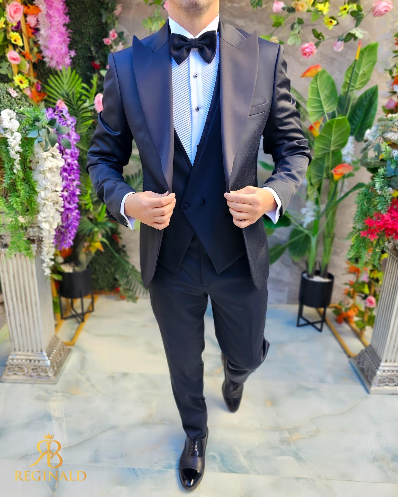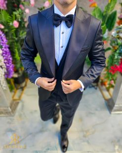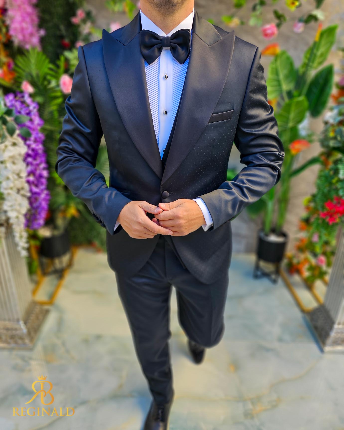 Set papion cu butoni si batista - culoare: albastru - Cod PP205
