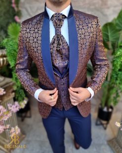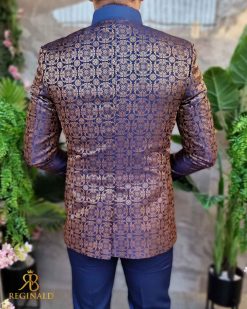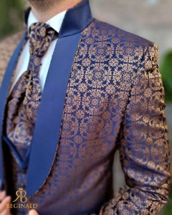 Sacoul este cu rever bleumarin satinat, model auriu imprimat