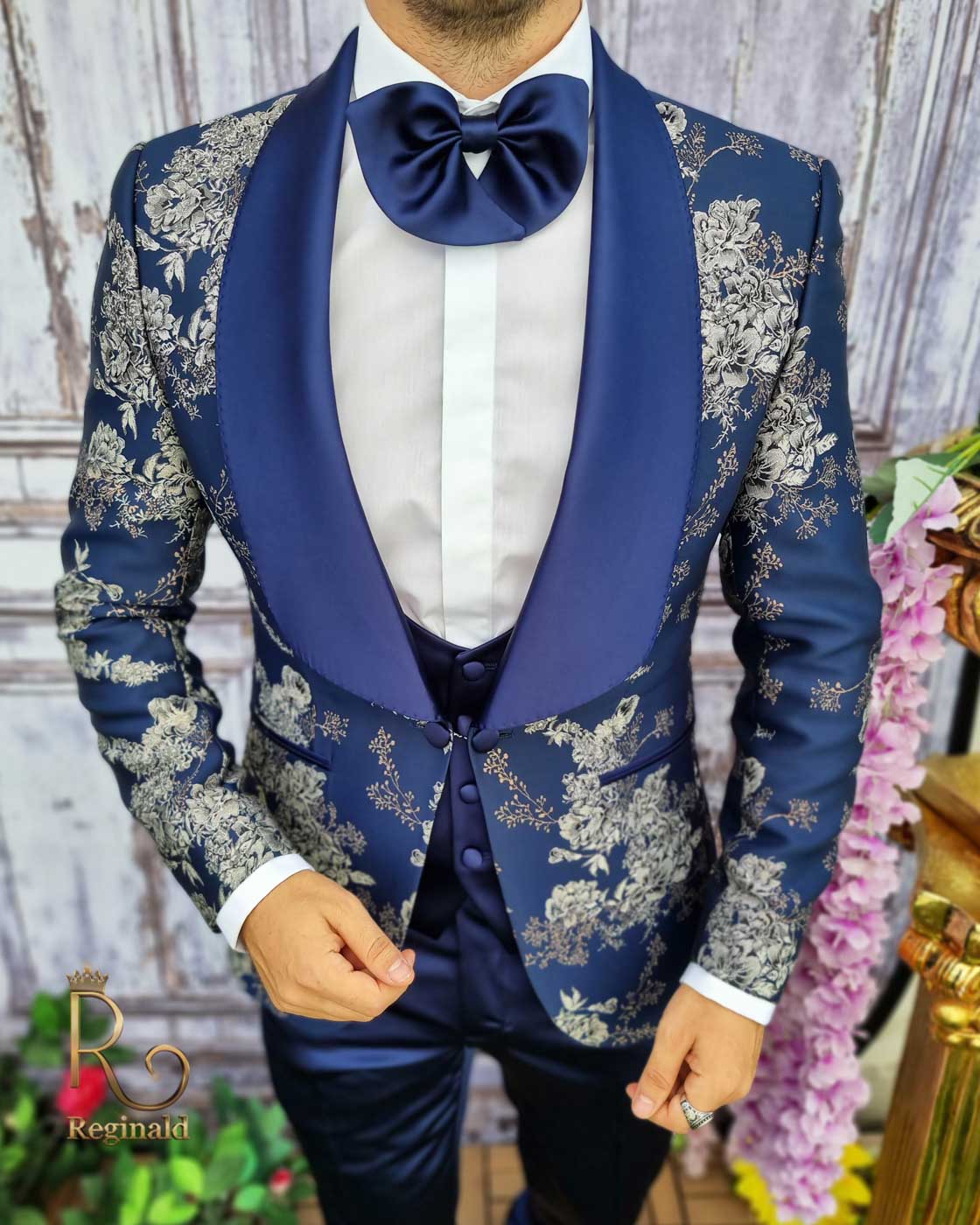 Sacou-Vesta-Pantalon-Papion Costum barbatesc, de ceremonie croiala slim-fit Reginald
