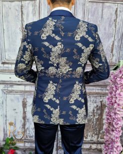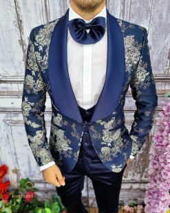 - Culoarea bleumarin, model brodat cu flori maro/aurii
