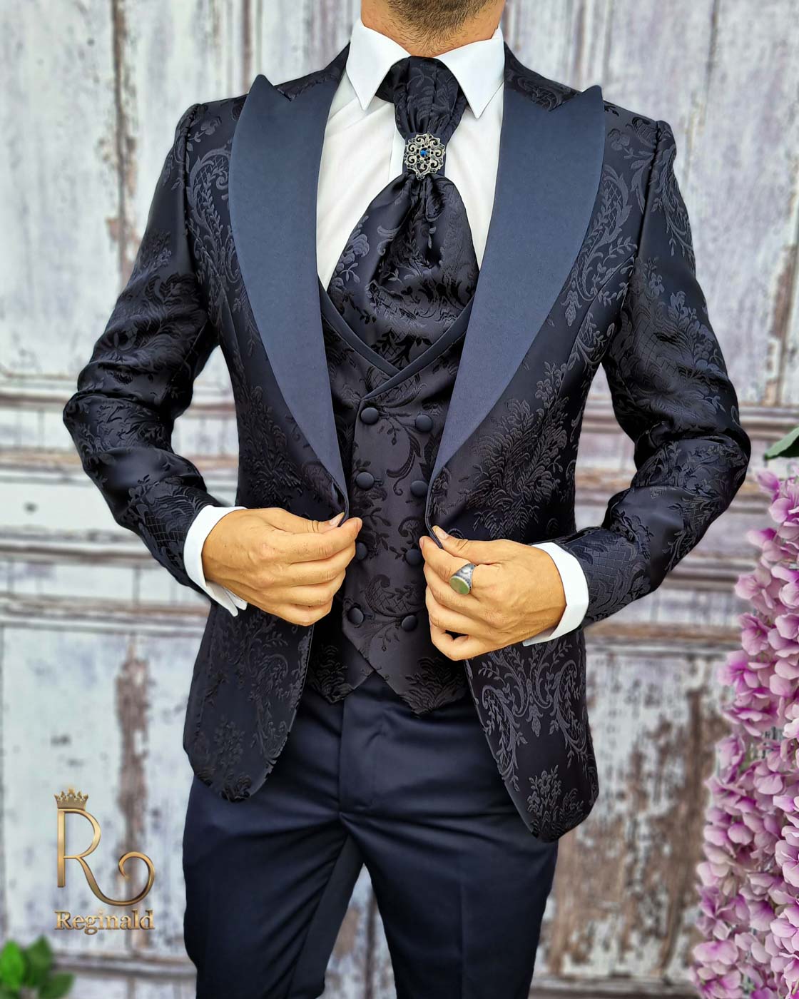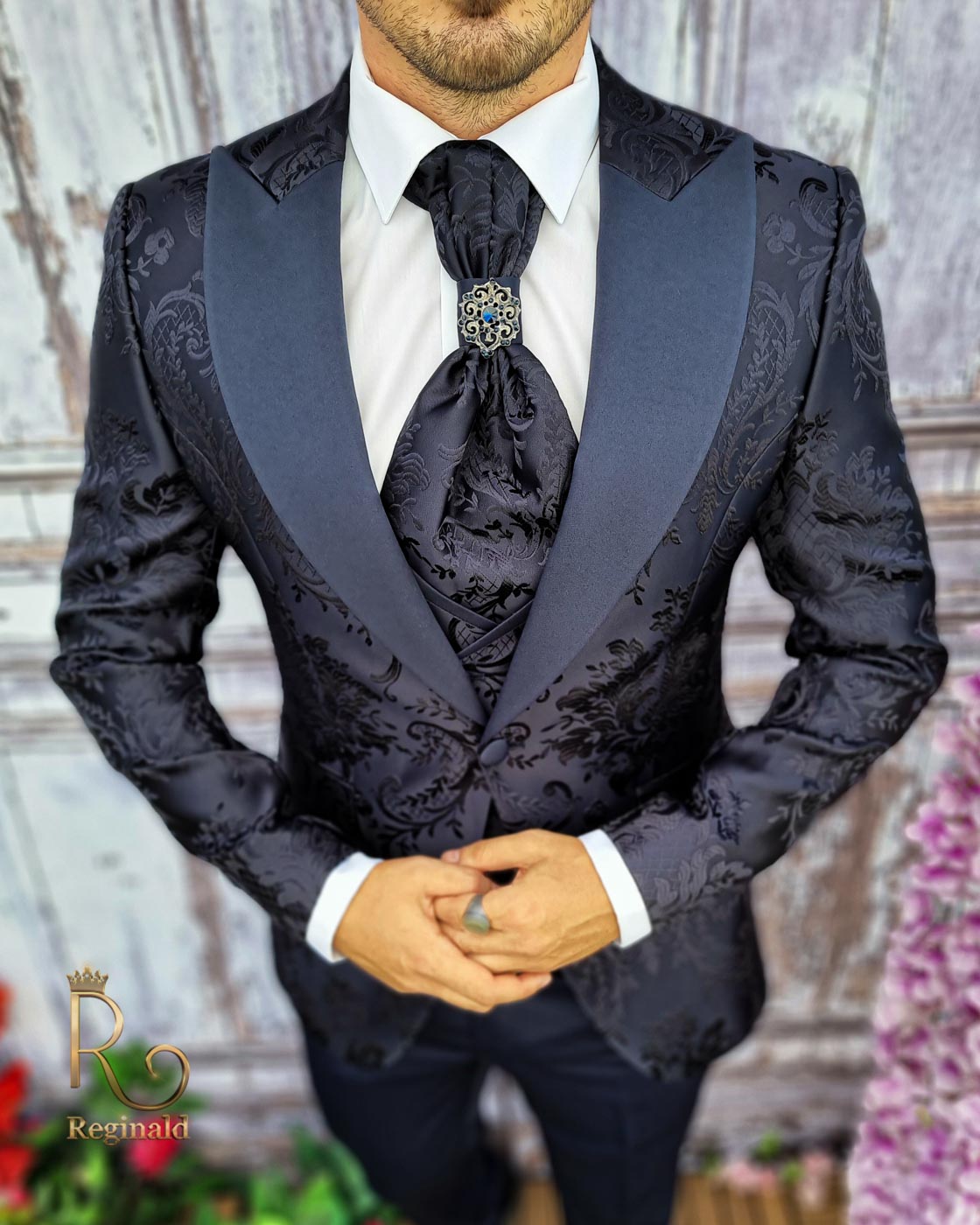 Sacou-Vesta-Pantalon-Cravata Costum barbatesc, de ceremonie croiala slim-fit