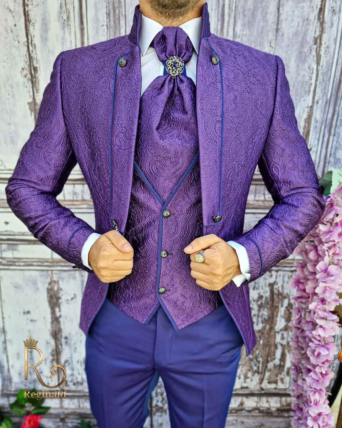 Sacou-Vesta-Pantalon-Cravata Costum barbatesc, de ceremonie croiala slim-fit Reginald
