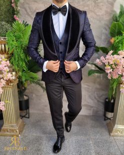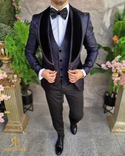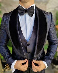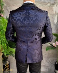 Sacoul are croila slim-fit, rever spitz din catifea , material brodat