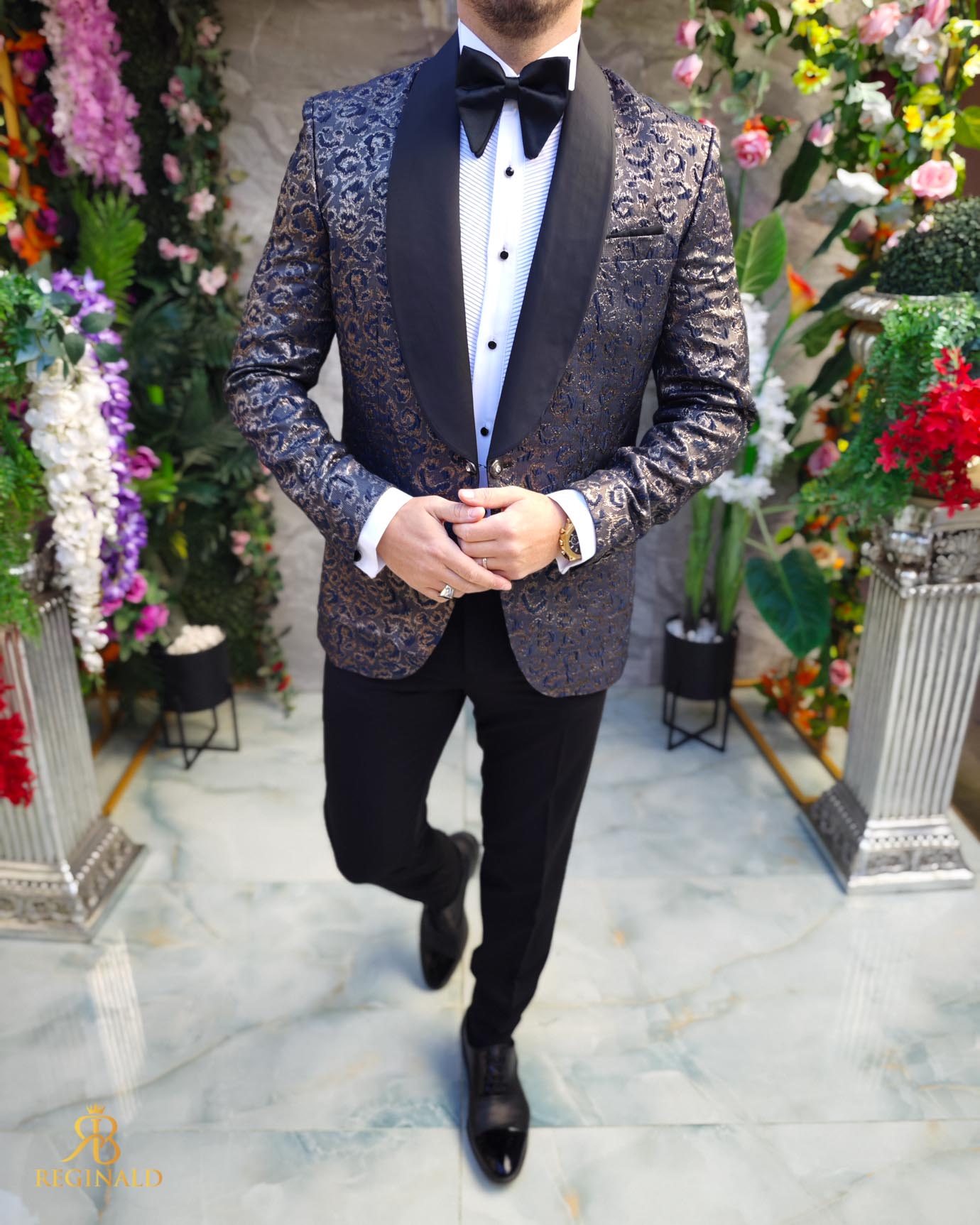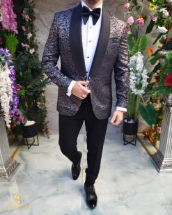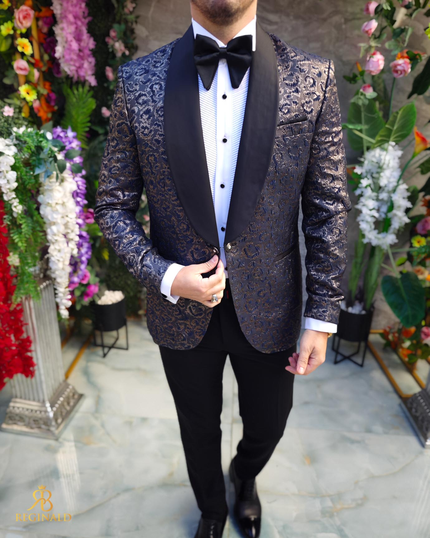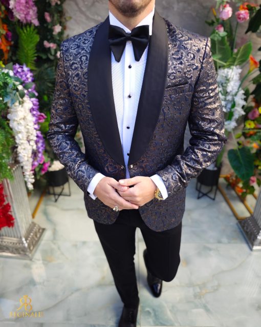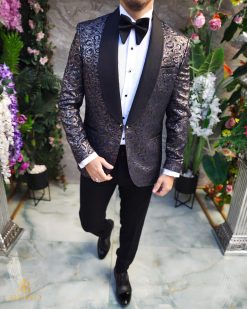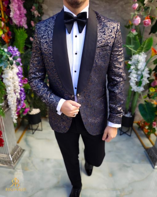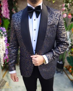 Set Cravata si batista, Turcoaz cu model - CV1074