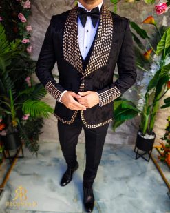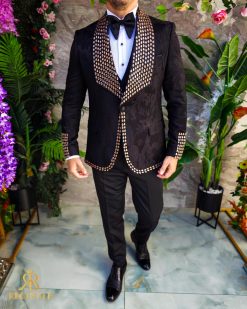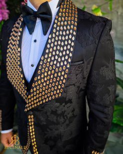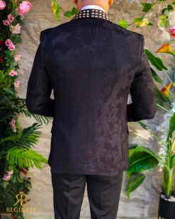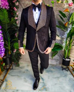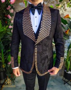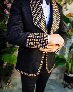 Sacoul este cu rever spitz, imbracat in pietre stralucitoare