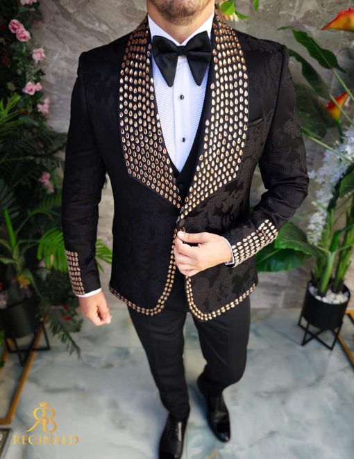 Sacoul este cu rever spitz, imbracat in pietre stralucitoare