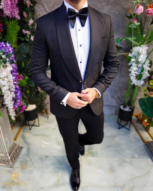Set Cravata si batista, Turcoaz cu model - CV1074