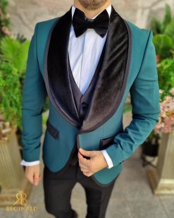 Sacoul are croila slim-fit, rever spitz, rotund, din catifea