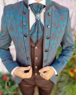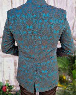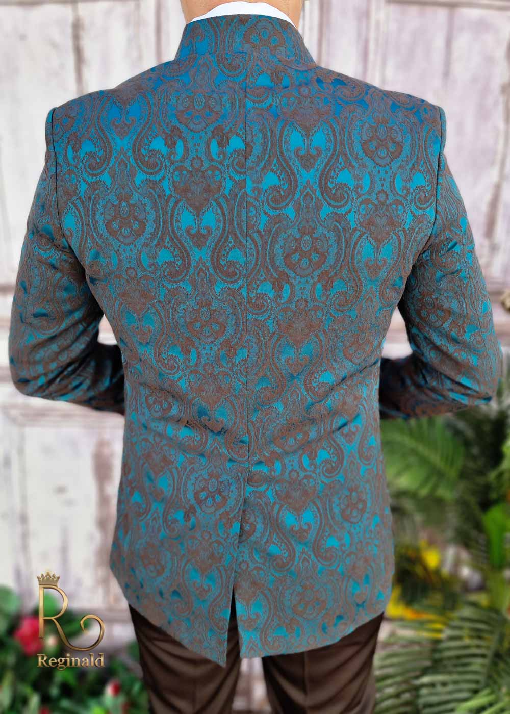 Costum ceremonie turcoaz/maro, Sacou-Vesta-Pantalon-Cravata, Colectia Reginald