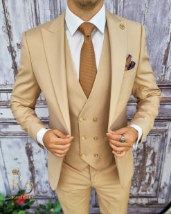 Costum crem de bărbați Reginald Slim-Fit set din 3 piese