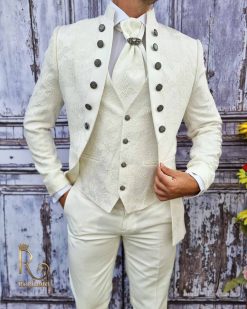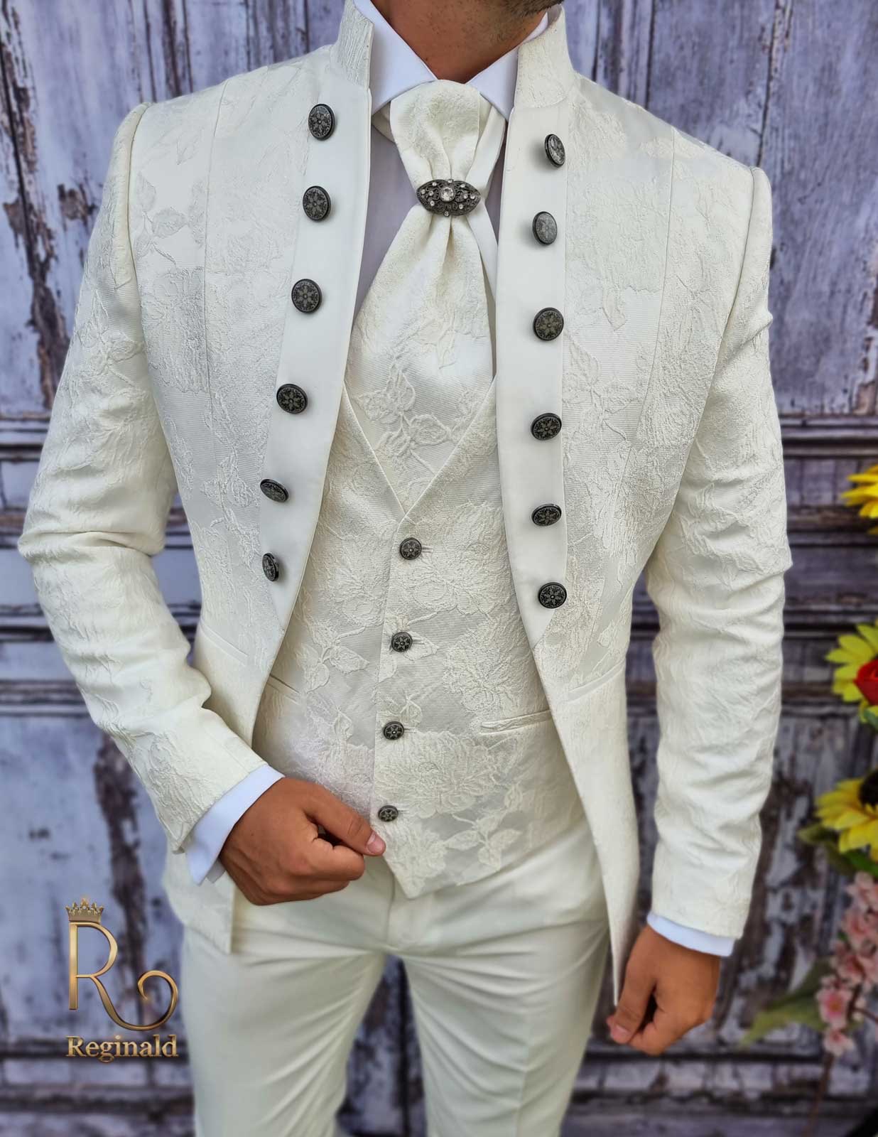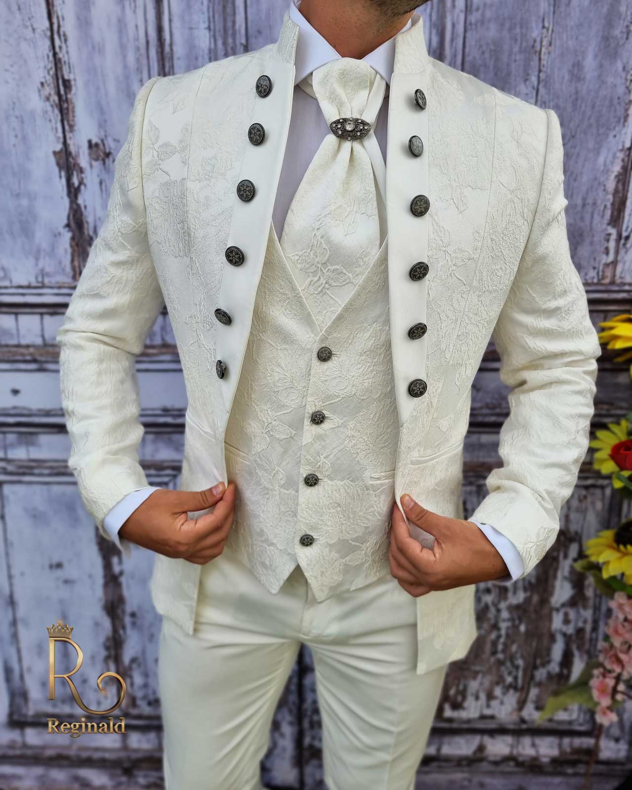 Costum ceremonie ginere/mire, Sacou-Vesta-Pantalon-Cravata, Colectia Nunta Reginald 2021