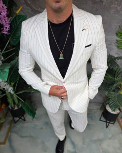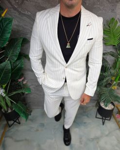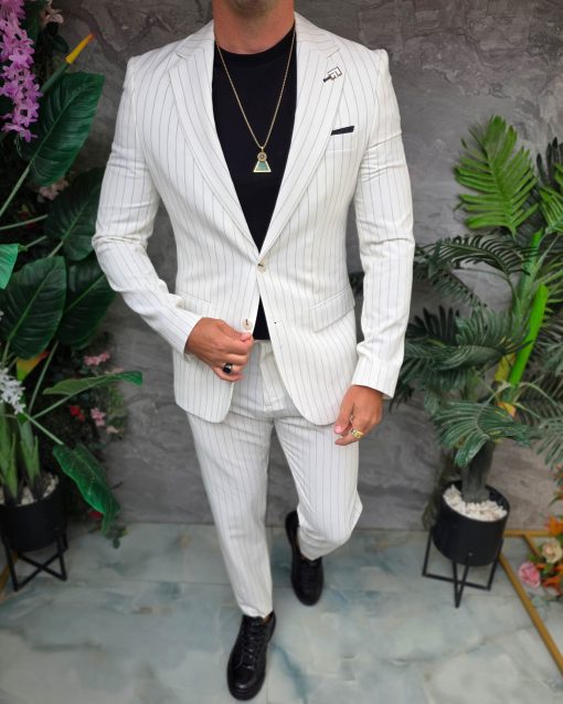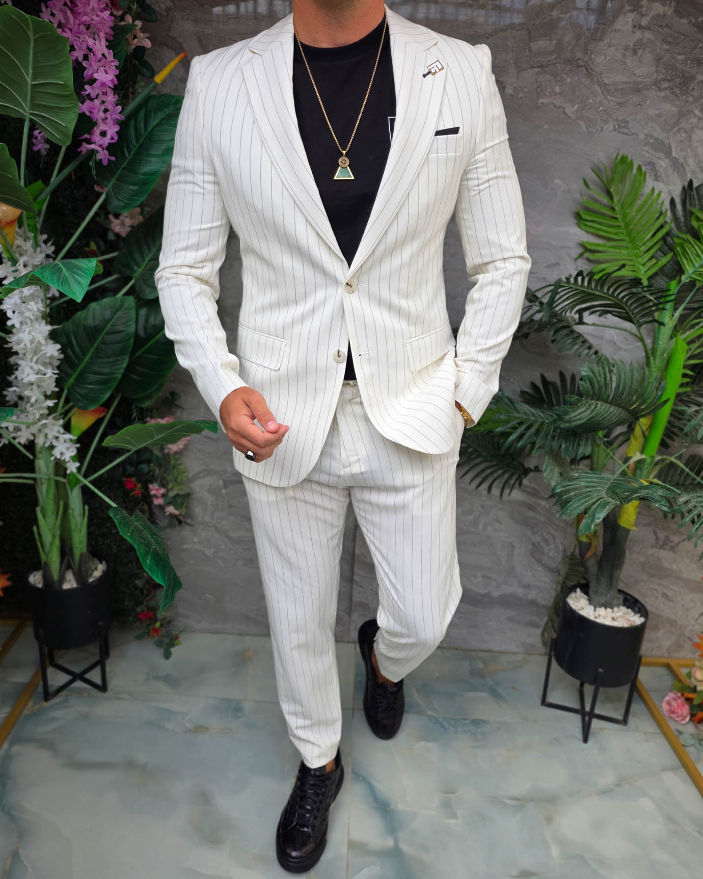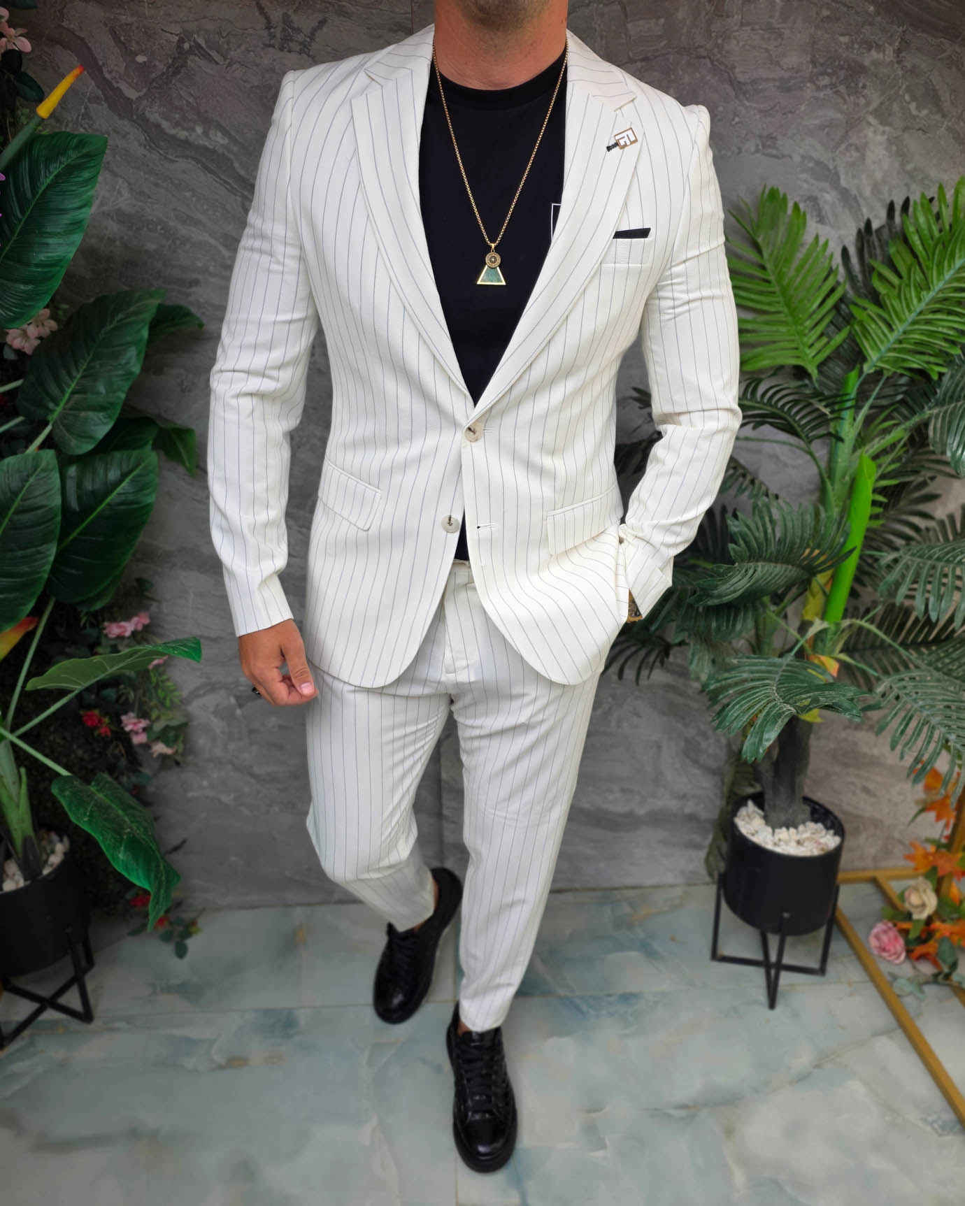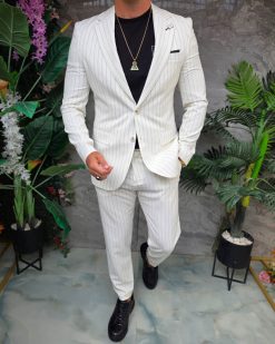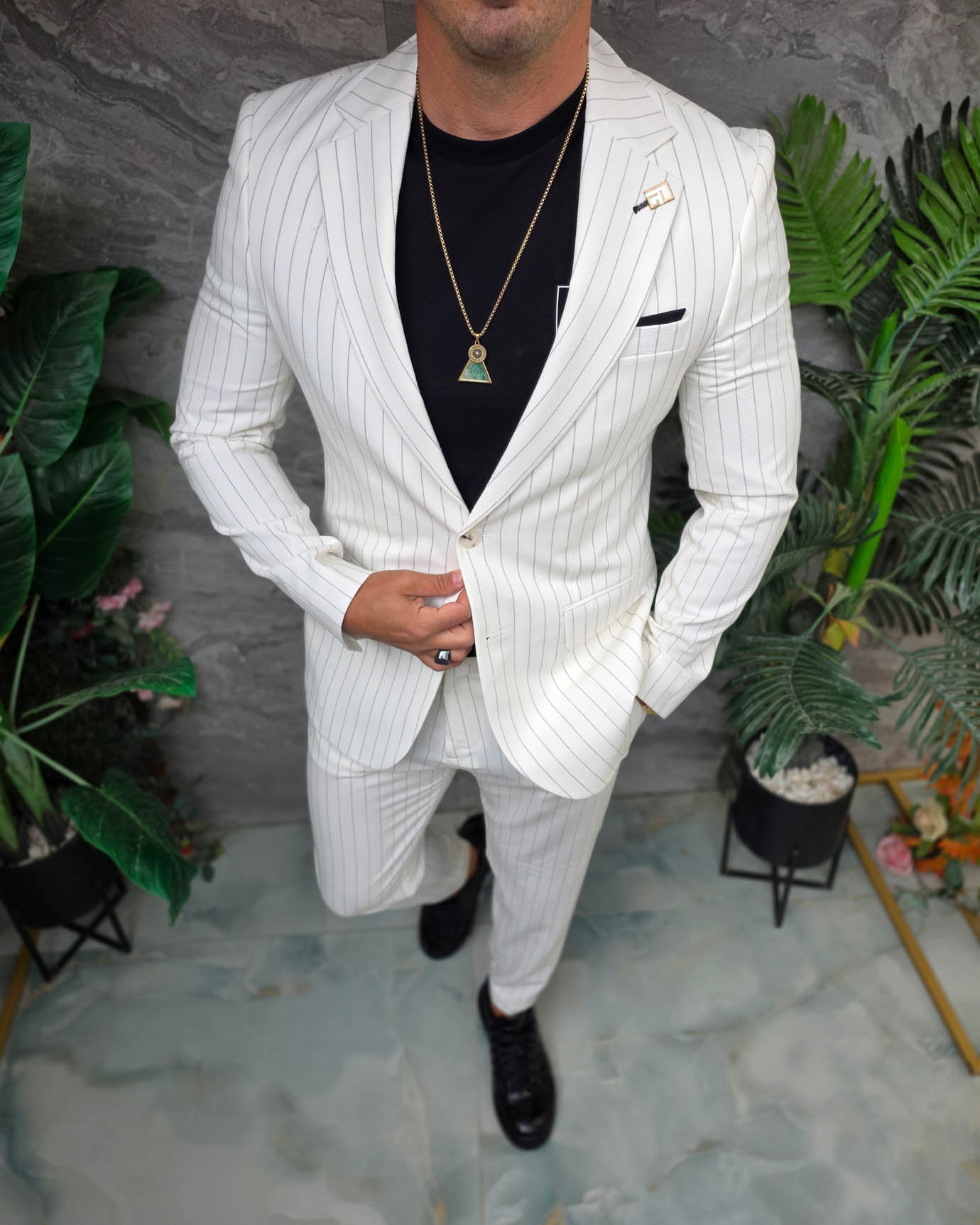 Costum de bărbați, Alb ivoire cu dungi: Sacou si Pantalon – C5362