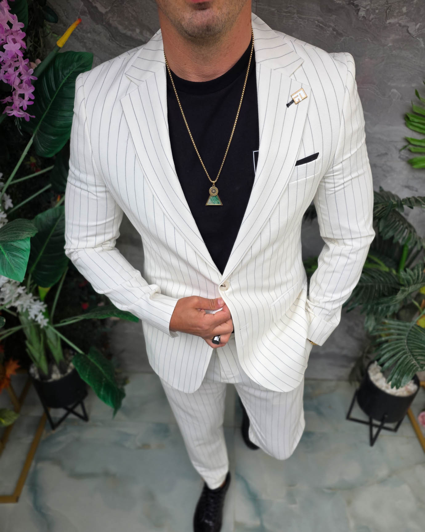 Costum de bărbați, Alb ivoire cu dungi: Sacou si Pantalon - C5362