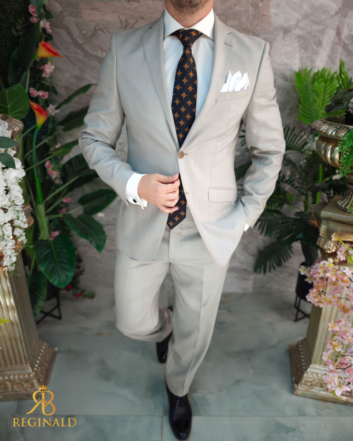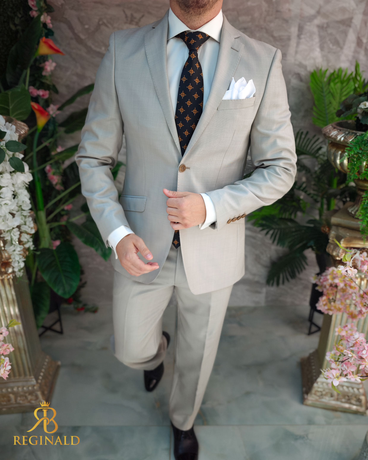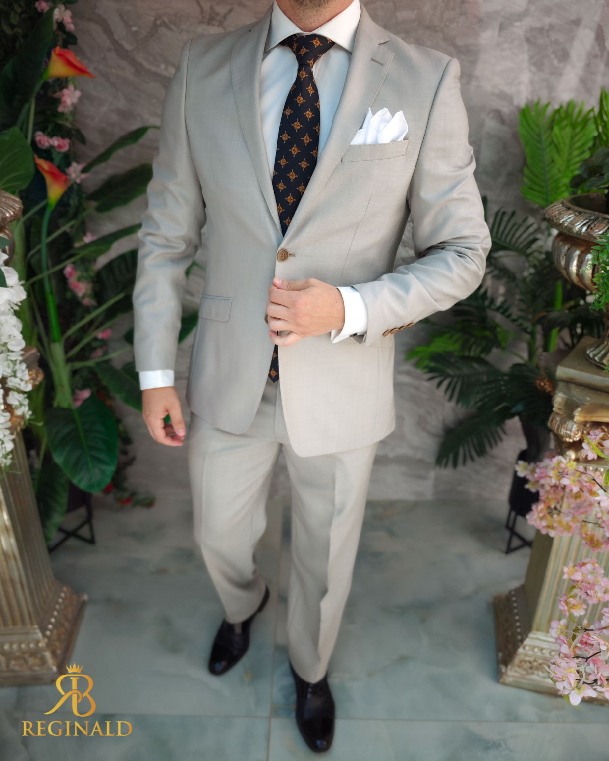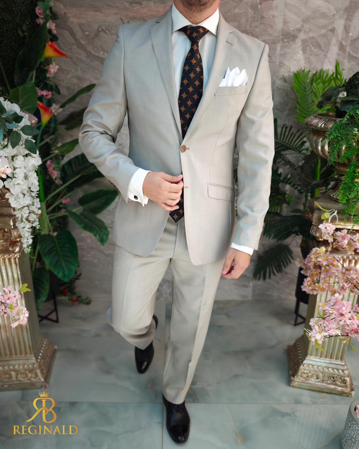 Costum de barbati bej, Regular-Fit: Sacou si Pantalon – C4853