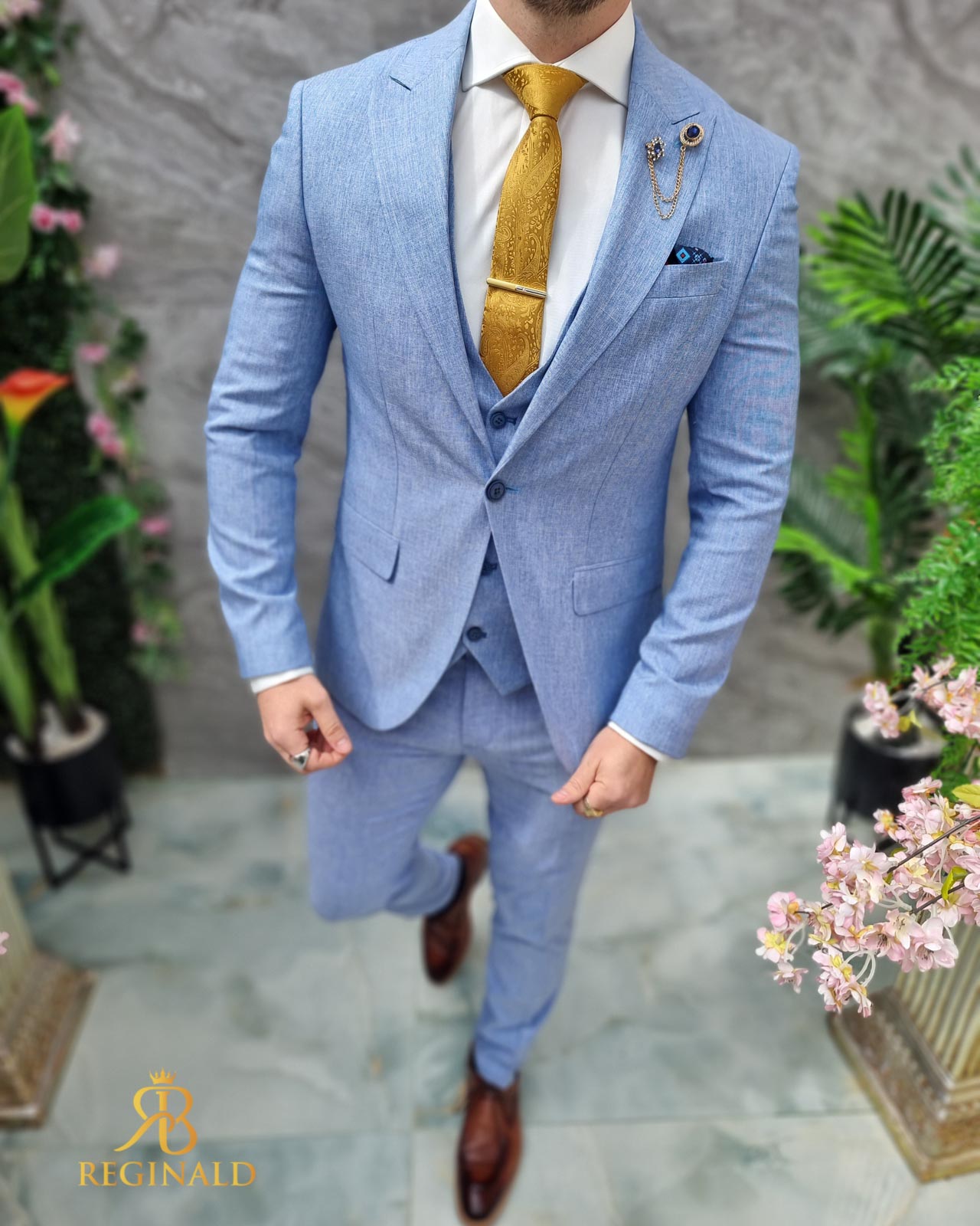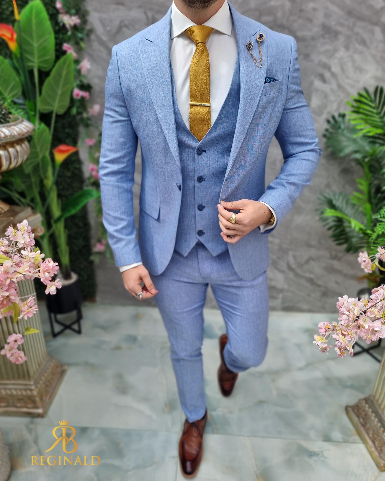 Costum de bărbați Bleu: Sacou, Vesta si Pantalon – C4691