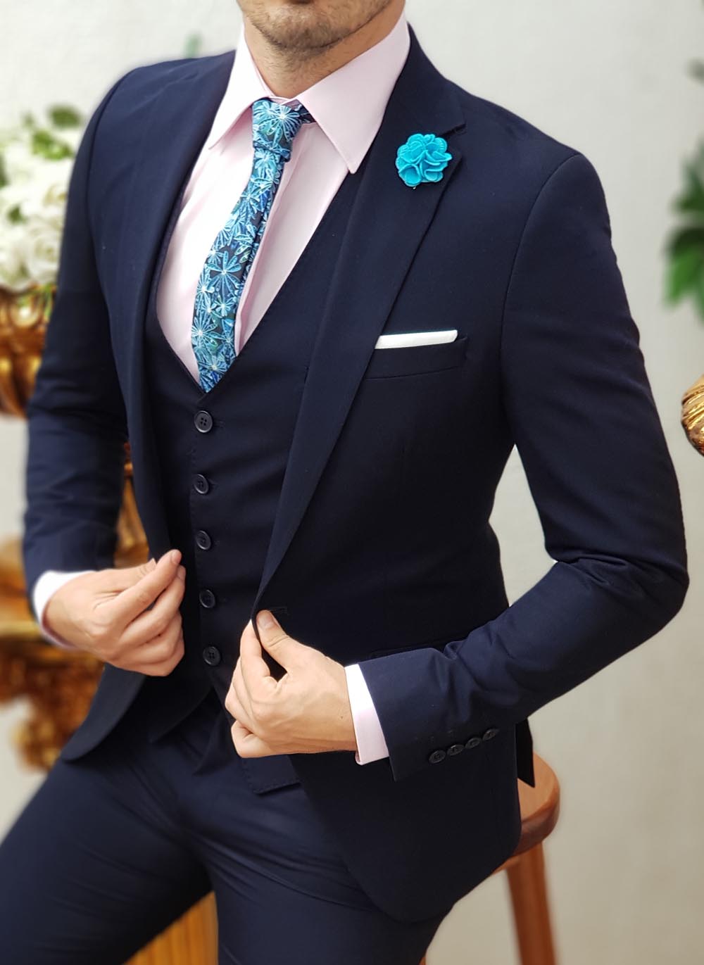 Pantalonii costumelor nu au tiv si nu vin foarte conici, ei pot fi ajustati dupa bunul plac, mai lungi, mai scurti sau mai conici, in functie de preferinte.